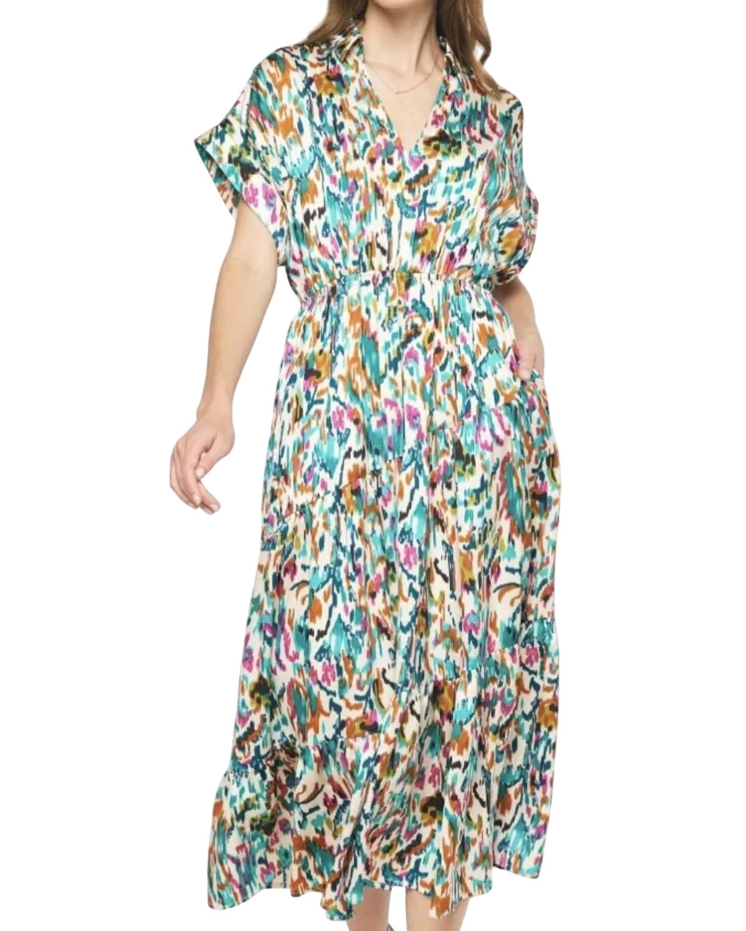 A midi dress so versatile, your options for wearing it are endless. Introducing the Satin Printed Midi Dress by Entro, a charming addition to your summer vacation wardrobe in a wine hue. This fit and flare silhouette features a V-neck, short sleeves, and side pockets, providing both style and functionality. The dress showcases a patterned design with a collared neckline and an elasticized waist, enhancing the boho chic trend. Closure: Pull on. Care: Hand wash and line dry.