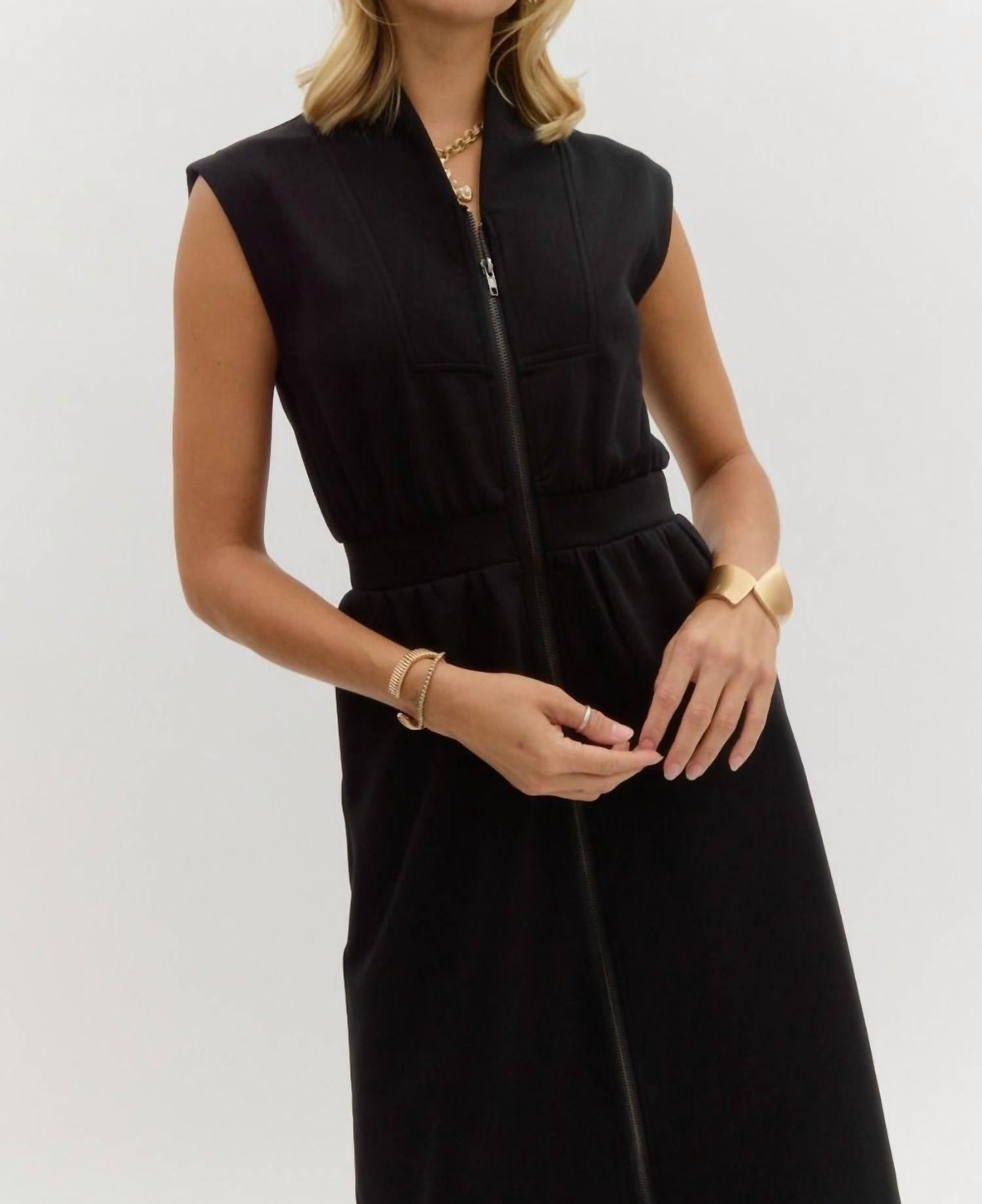 Elevate your travel wardrobe with the Sleeveless Zip Up Midi Dress by Entro in a calm cream hue, perfect for a touch of quiet luxury. This cotton blend A-line dress features a practical zip closure, collar neckline, and the convenience of side pockets. Hitting at a midi length, it's unlined, non-sheer, and lightweight, making it ideal for fall outings including Thanksgiving gatherings. Made from 50% Cotton, 43% Polyester, 7% Spandex. Care is hassle-free: simply machine wash and line dry. Available bust measurements: small 36", medium 38", large 40"; length for all sizes: 47".