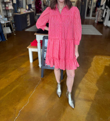 Step into the season with the Remi Tribal Dress by Sincerely Ours, a Boho Chic standout in a patterned pink design perfect for Valentine's Day or a vacation getaway. This women's shift dress features three-quarter sleeves and a smart collar neckline for a sophisticated look. Closure: Button closure. Ideal for spring, this dress is a staple for any fashion-forward wardrobe.
