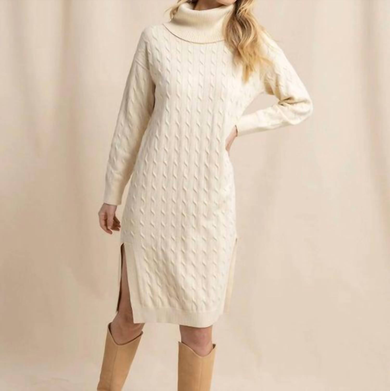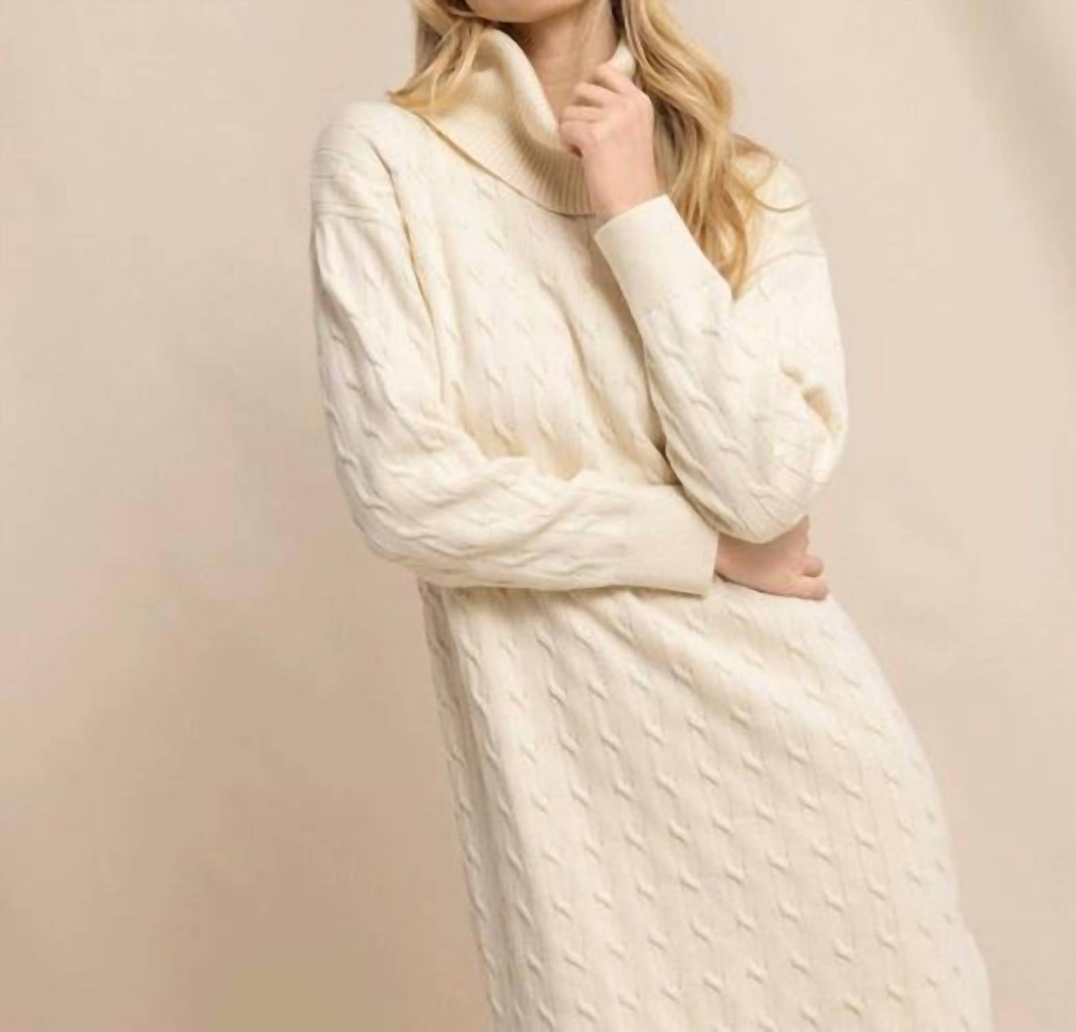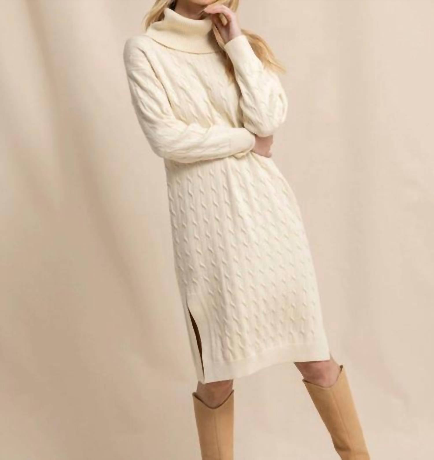 Look effortlessly chic in the Brea Sweater Dress. The sophisticated midi length with side slits and relaxed turtleneck collar give this dress a polished finish. The comfortable fit and the cotton and cashmere blend make this sweater dress a go-to for comfort and warmth on chilly days.