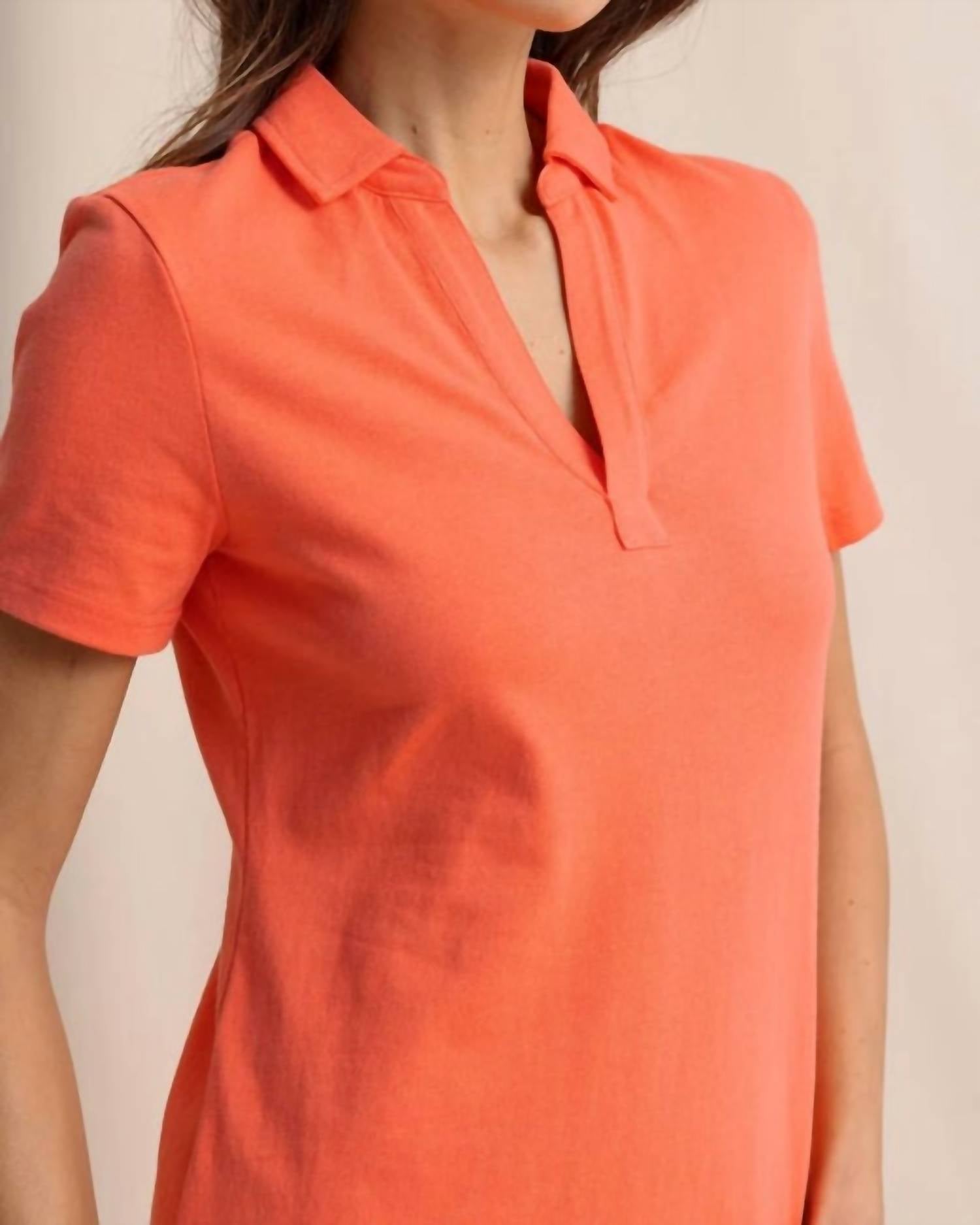 Combine a polo's classic style with a shirt dress's feminine fit. With open side slits, a crisp polo collar, and a 100% cotton blend, this 36.5” solid polo dress adds a traditional touch to your summer wardrobe. Model is wearing a size XS. Machine Wash