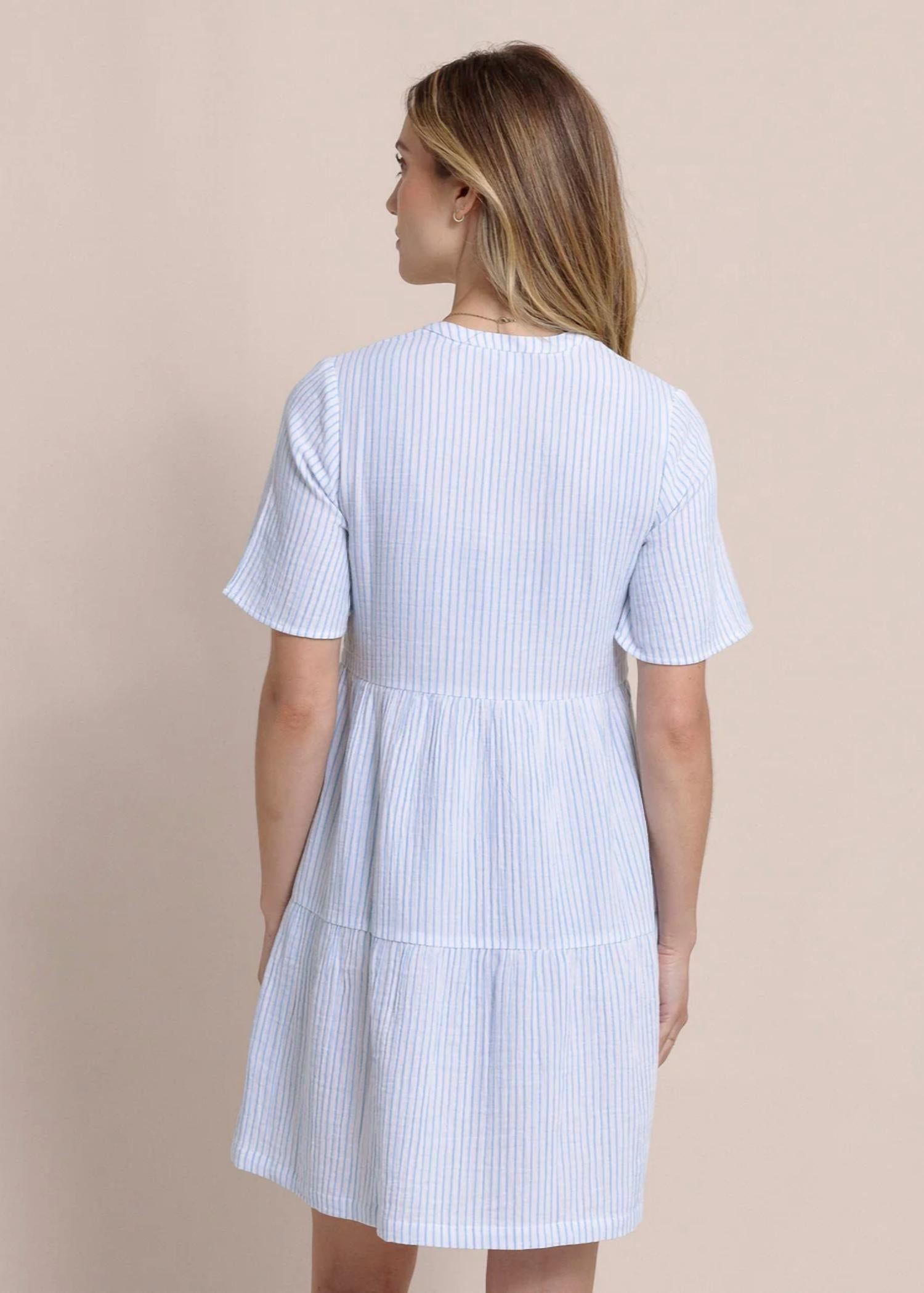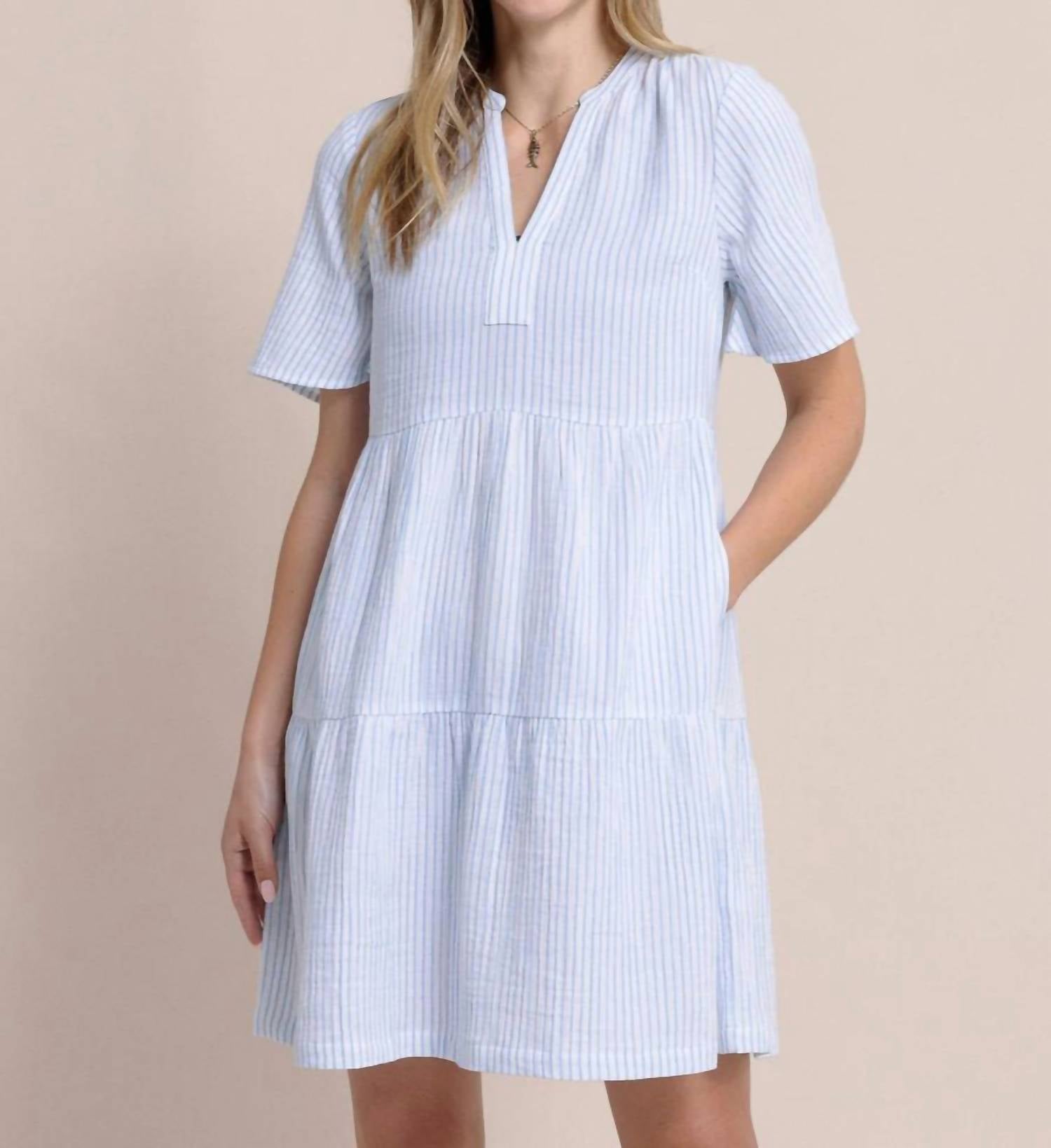 Introducing the Harper Short Sleeve Dress by Southern Tide, a vibrant Very Berry slice of sophistication. This tiered mini dress is crafted from 100% cotton double cloth, featuring a flattering shift silhouette and a V-neckline. At 38 inches in length, it includes side seam pockets and offers a pull-on closure for ease of wear. Perfect for occasions from brunch to evening outings, it’s machine washable and can be tumble dried for convenient care.