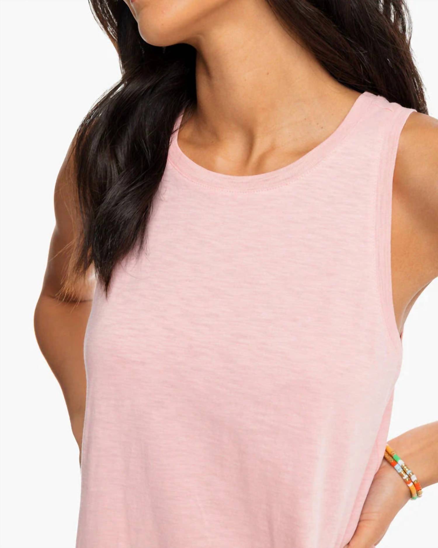 Experience the effortless style of the Portia Sun Farer Tank Mini Dress by Southern Tide, a must-have in Quartz Pink. Crafted from 100% cotton slub, this sleeveless, crewneck dress is sun-washed for a unique sun-faded look and features ribbed neck and armholes for added comfort. A solid sheath silhouette ensures a flattering fit with a convenient pull-on closure. Care is simple: machine wash cold, tumble dry low, with hanging recommended to prevent shrinking.