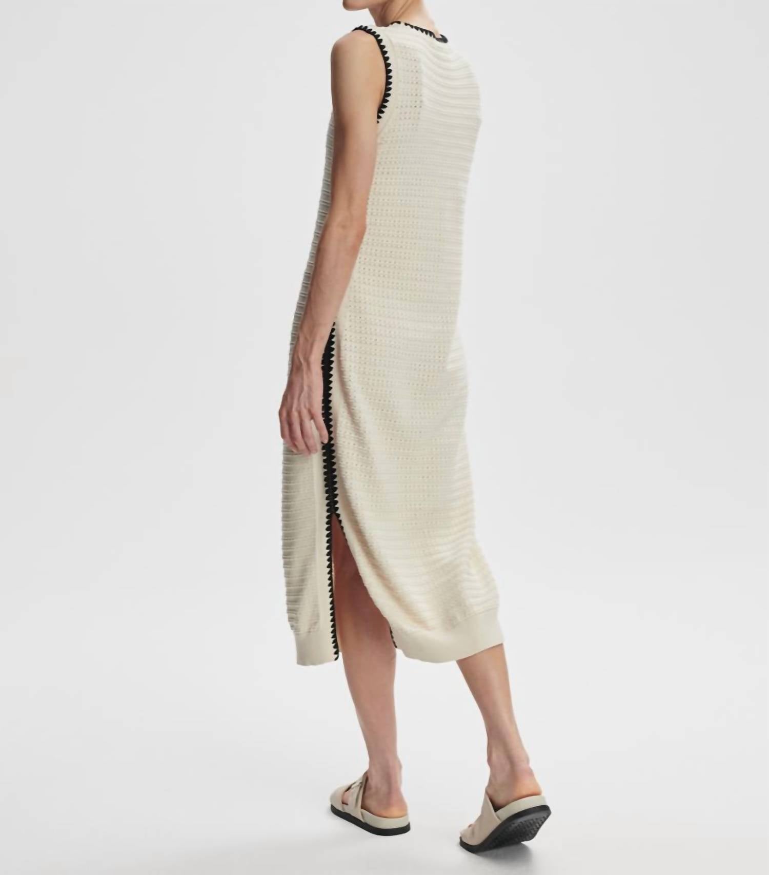 Elevate your everyday style with the Dwight Tank Knit Midi Dress by VARLEY, a refined piece in birch with a textured striped pointelle knit. This sleeveless bodycon dress features a modern midi length, making it ideal for beach days with sandals or stylish evenings out. Made from 100% cotton, it comes with a pull-on closure and contrasting scalloped edging that adds a charming touch. Care for this dress by machine washing cool, drying flat, and reshaping while damp.