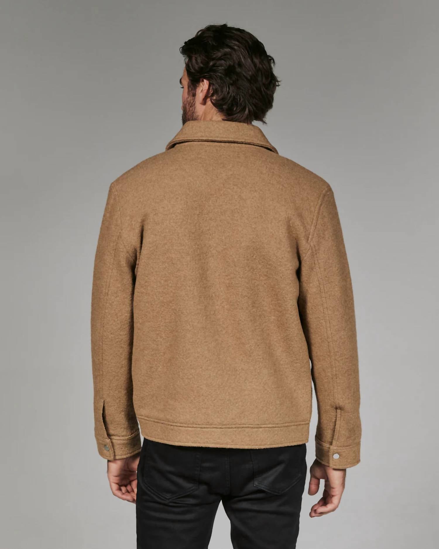 Elevate your style with the 7Diamonds Boucle Zip Jacket, a luxurious addition crafted for ultimate warmth and comfort. Featuring long sleeves and expertly made from 100% wool, this tan jacket offers a rich texture matched with a contemporary twill satin lining composed of 96% polyester and 4% spandex. It boasts a practical zip closure and pockets, making it both functional and fashionable. Care: Professional dry clean only, avoid machine washing and ironing on low under damp cloth for longevity.