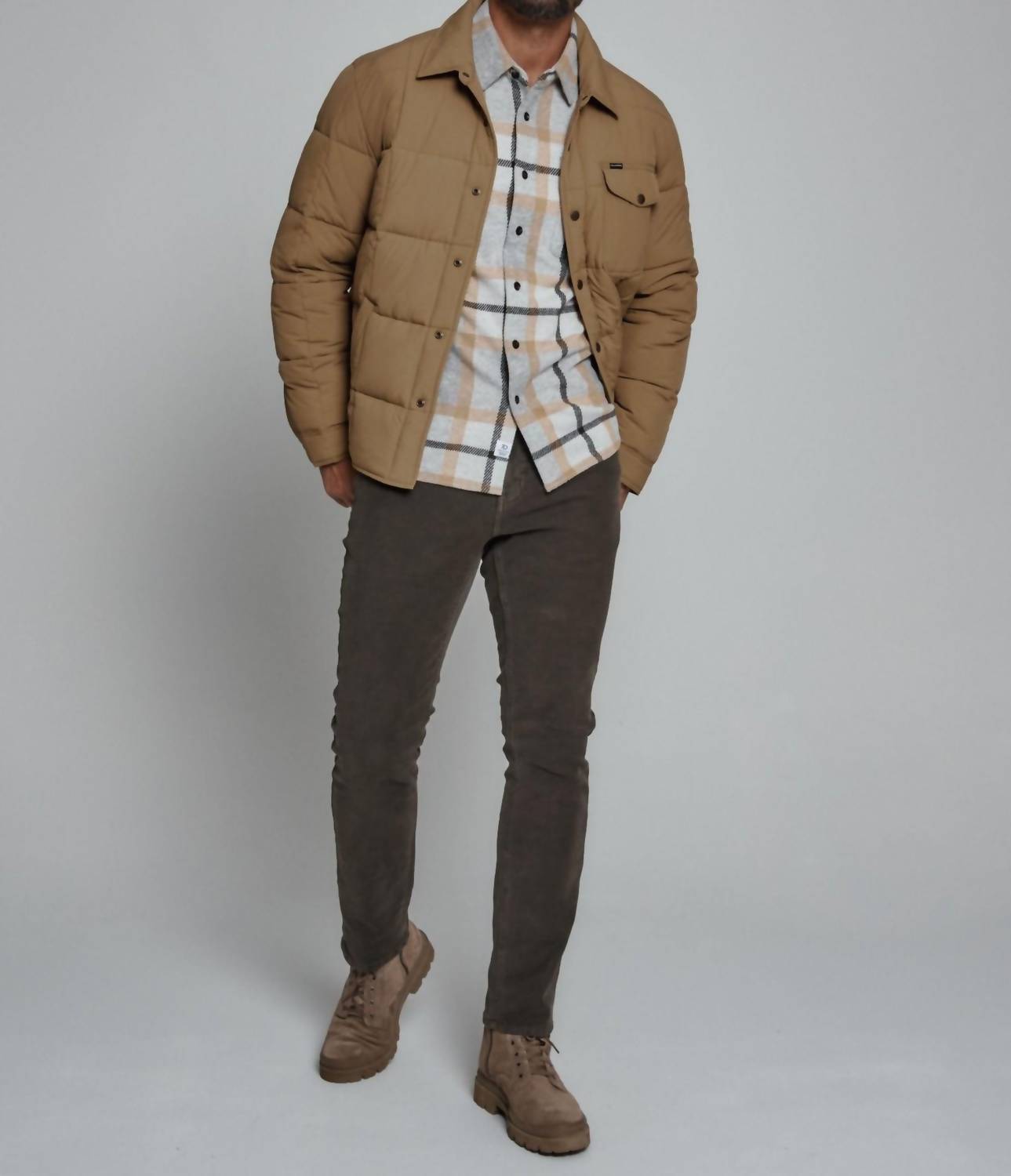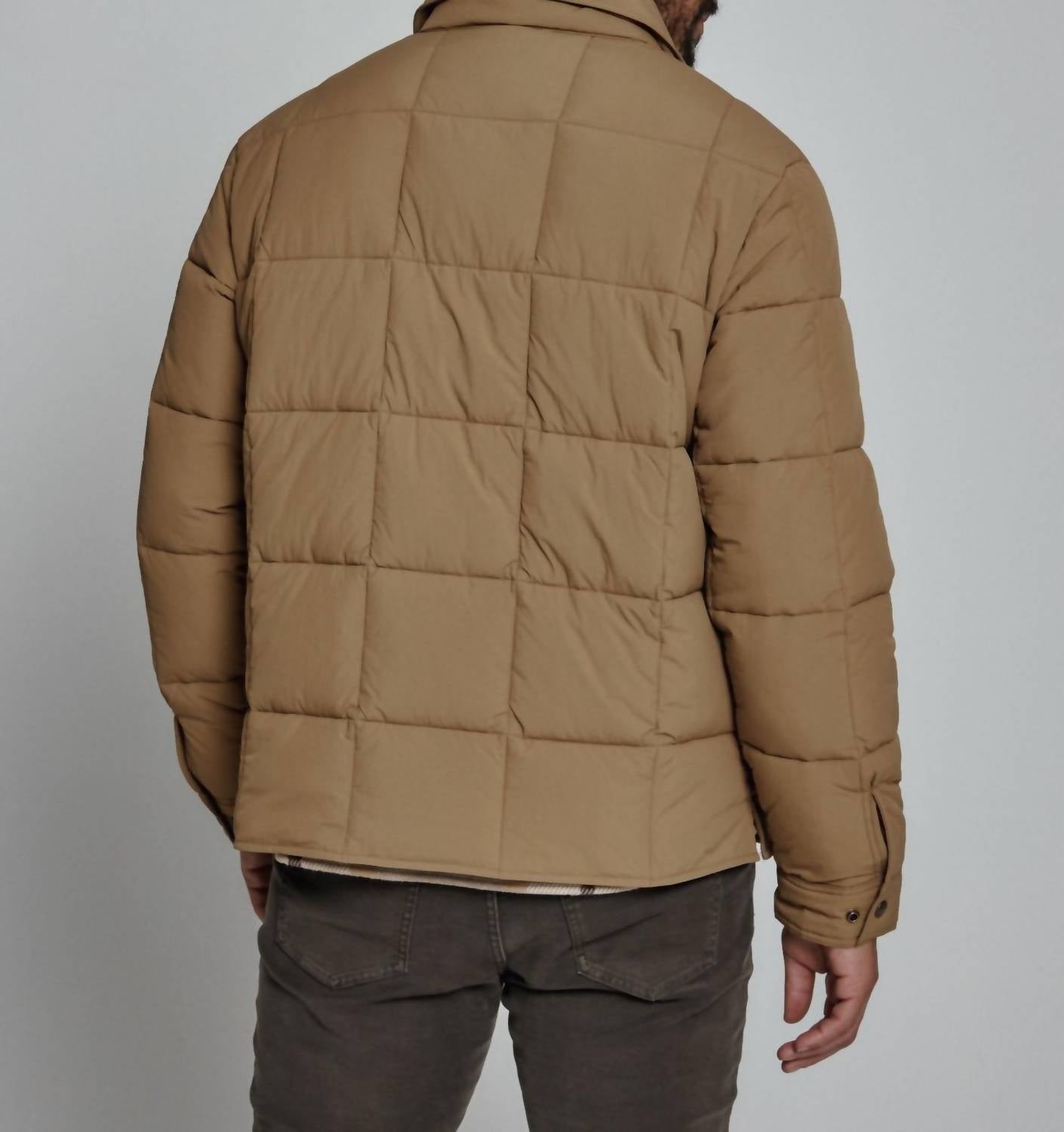 Experience ultimate warmth with the Summit Quilted Puffer Jacket by 7Diamonds, featuring long sleeves and crafted from 100% nylon with recycled fiber insulation fill. This tan jacket includes a front flap pocket, interior pocket, and a hidden phone pocket to keep essentials secure. Designed with snap closure cuffs and side vents, it offers maximum comfort and adaptability. Care instructions: machine wash cold with similar colors, tumble dry low, do not bleach, iron, or dry clean.