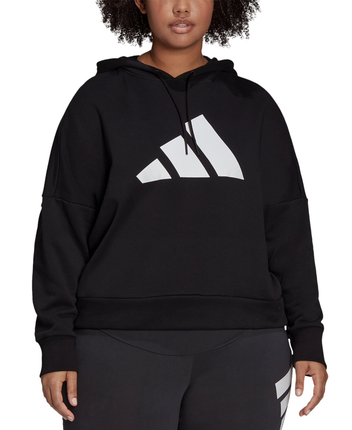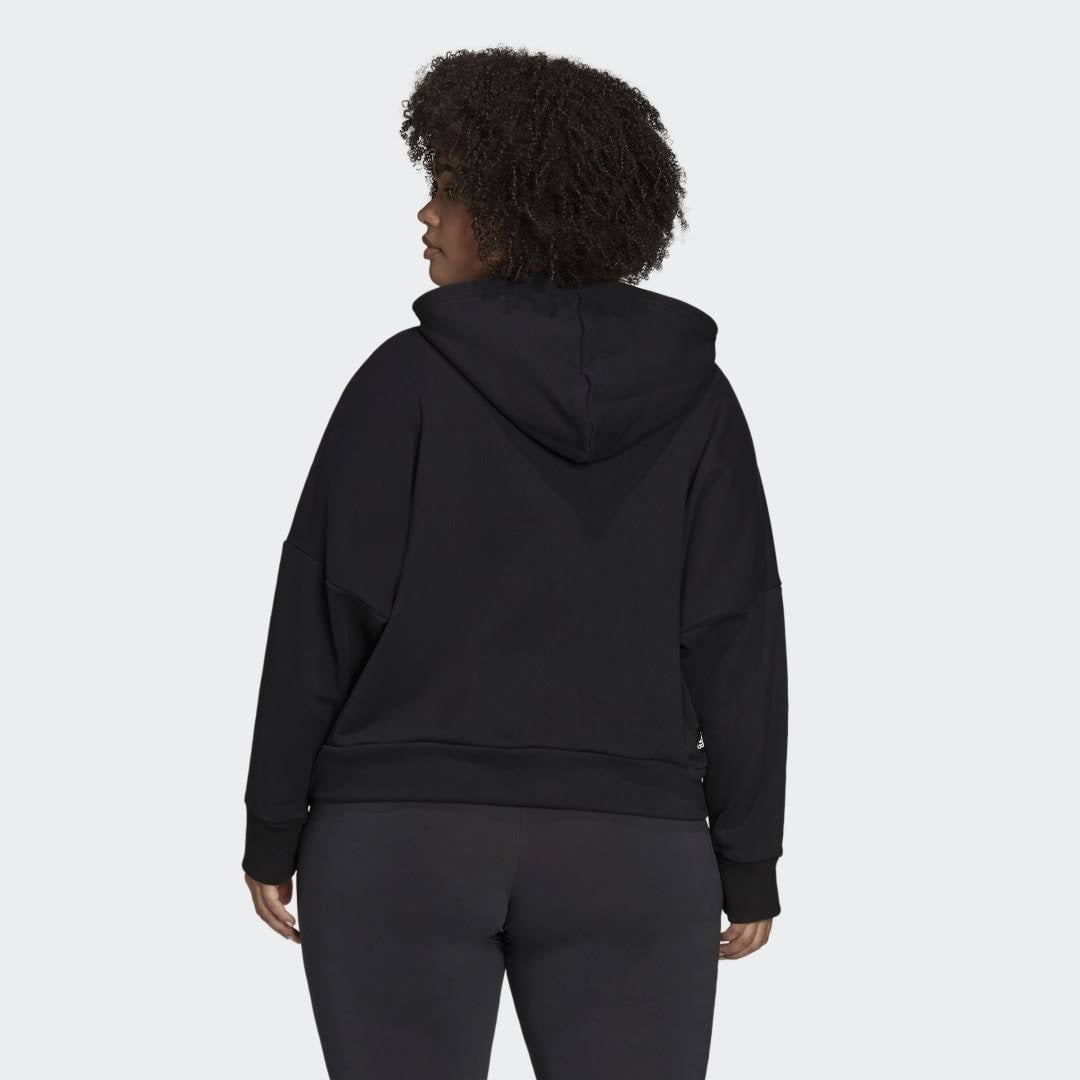 adidas Women's Stretch Ribbed Drawstring Zippered Sleeve Logo Graphic Dolman Sleeve Hoodie Top Black Size 3X