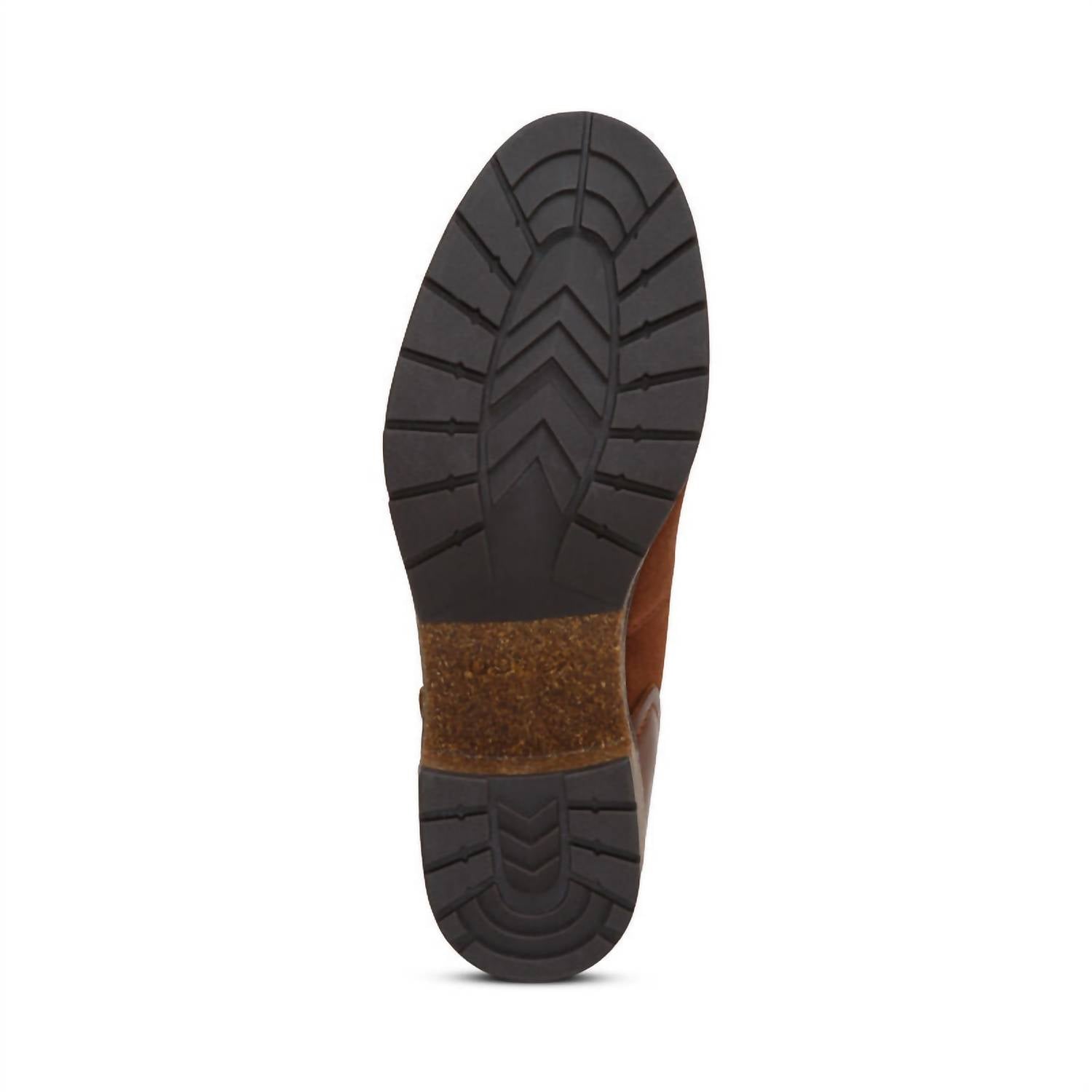 Introducing the Women's Frankie Twin Gore Ankle Boot by Aetrex, a chic and versatile addition to your wardrobe. Made in genuine leather with dual side ankle stretchy gore, these brown boots offer both style and comfort with built-in arch support and UltraSky™ cushioning. The lightweight rubber and cork outsole ensures durability and traction, paired with a removable insole for customizable fit. With a calf height of 5.5 inches, calf circumference of 10.6 inches, and a 2-inch chunky heel, these boots are perfect for a minimalist look at a dinner party this spring.