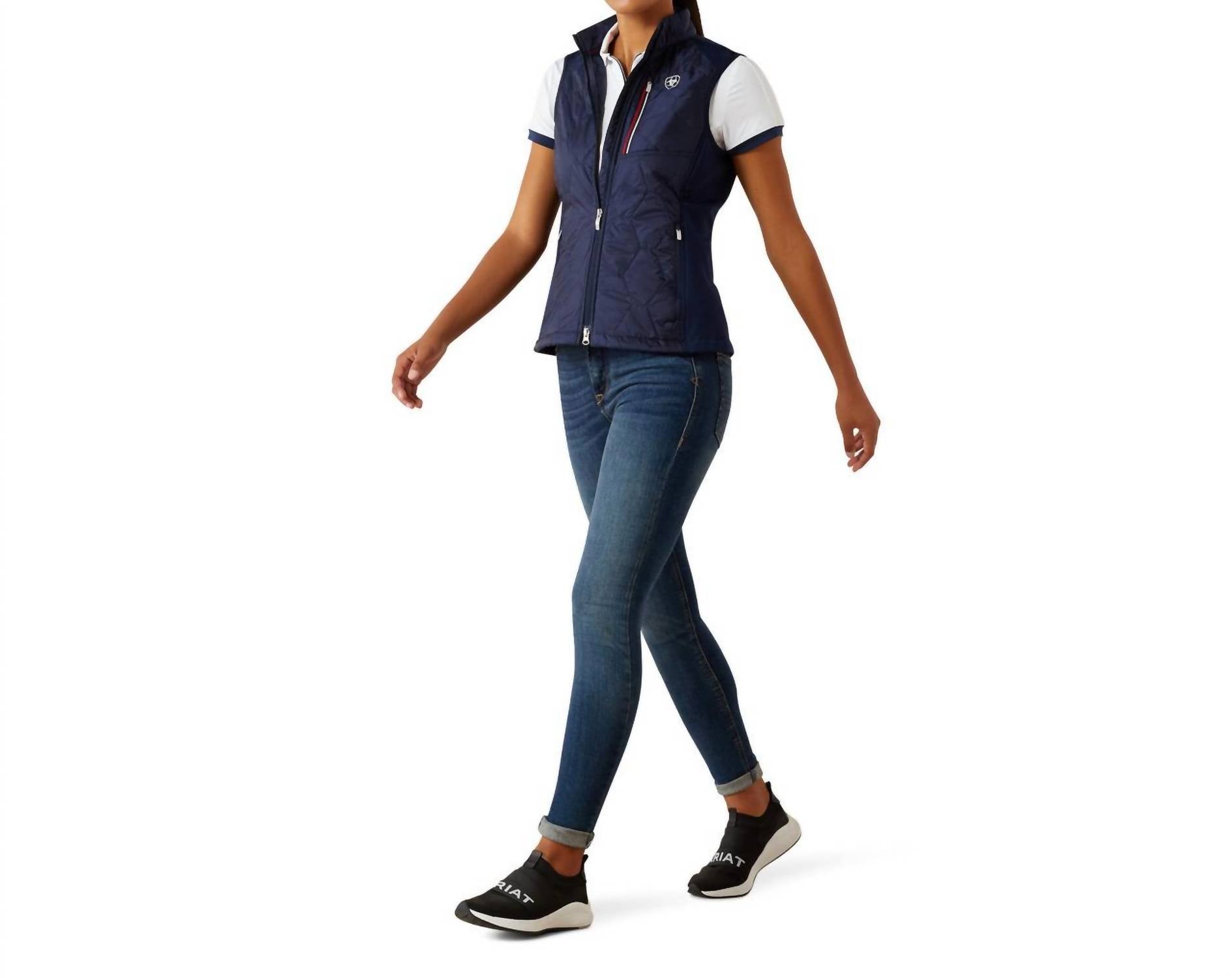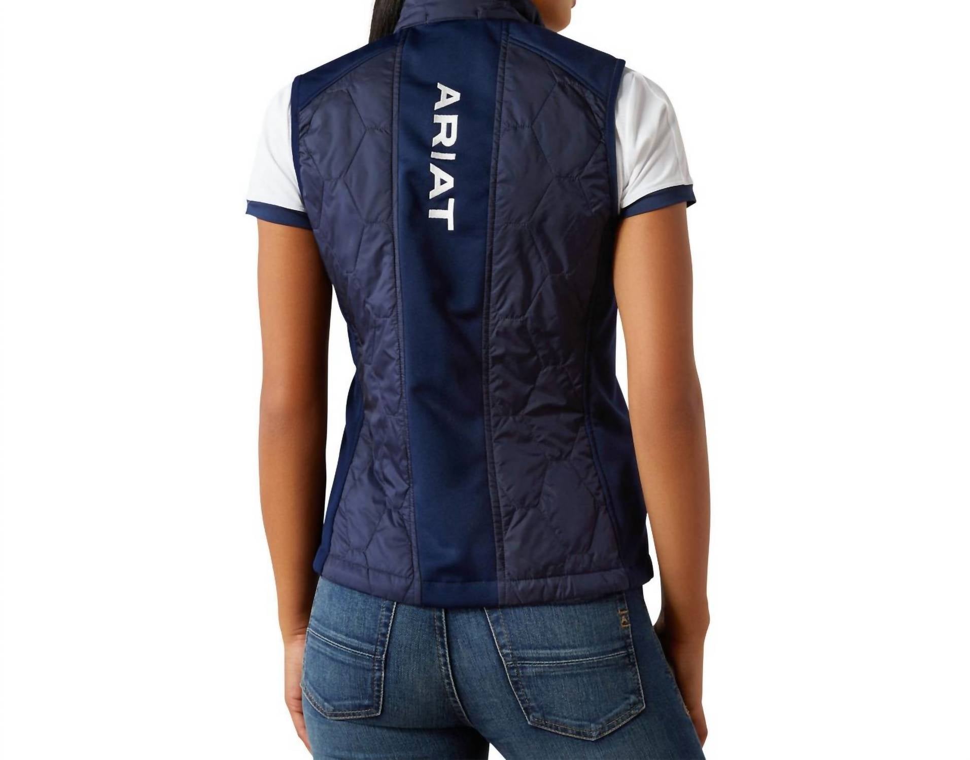 A vest so versatile you can mix and match it with almost any outfit and it will feel brand new every time. Meet the Fusion Quilted Insulated Vest by ARIAT, an essential for your camping adventures. This sleeveless vest in a solid navy features a cozy mockneck design. It offers a convenient zip closure and is perfect for layering in the fall. For best care, hand wash and lay flat to dry.
