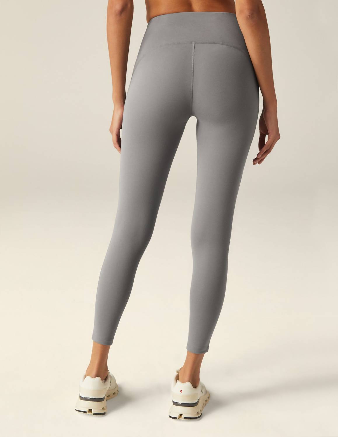 Introducing the BEYOND YOGA Powerbeyond Strive Midi Legging, expertly designed for both style and performance. With an inseam of 24 inches, these leggings feature a pull-on closure and a 4-inch contoured waistband with powermesh for enhanced support, along with a convenient pocket at the back waistband. Made in the US from 95% polyester and 5% elastane, they offer a flattering skinny leg style that fits comfortably between the calf and ankle. Machine wash.