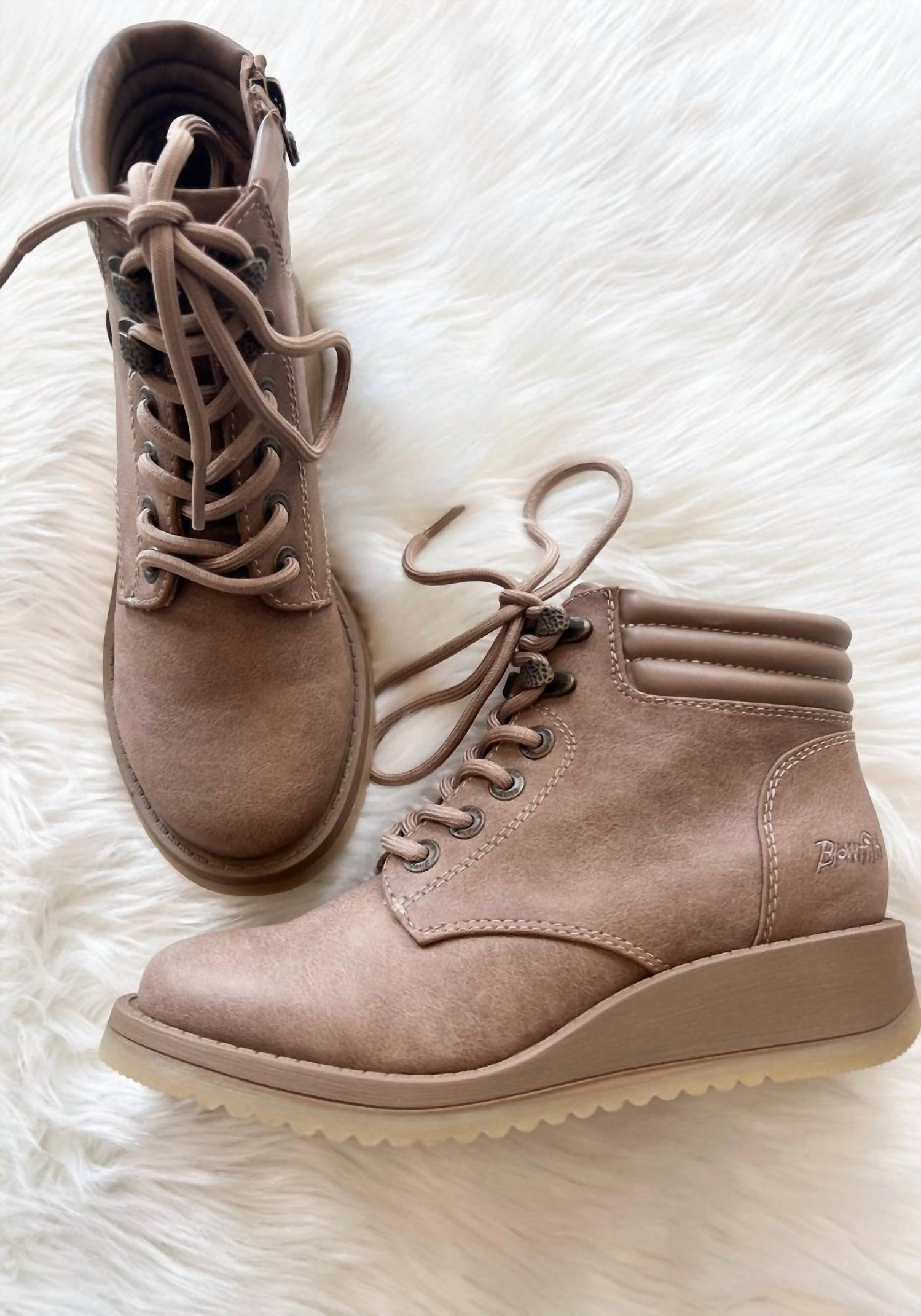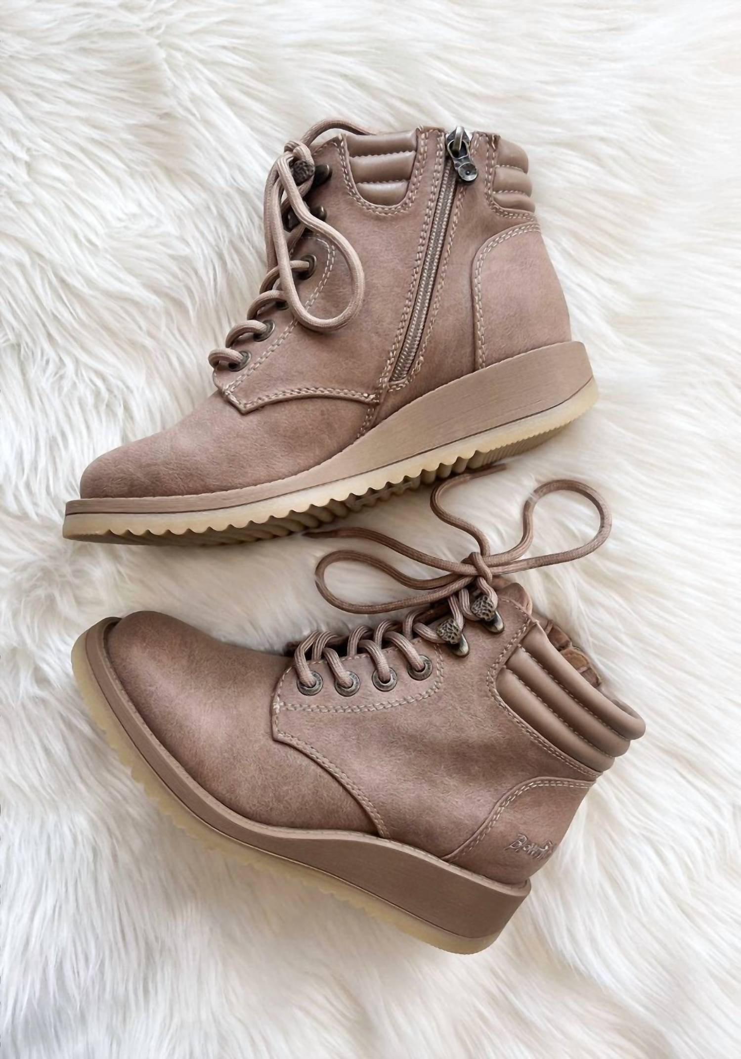 Step into the Blowfish City Bootie, the perfect addition to your cool weather wardrobe. These almond redwood ankle boots feature a wedge heel of 1.5 inches, combining comfort and style effortlessly. Crafted from durable faux leather, they offer the convenience of a functional side zipper for easy wear, eliminating the need for laces. Ideal for everyday wear, these boots fit true to size and promise to become a staple in your footwear collection.