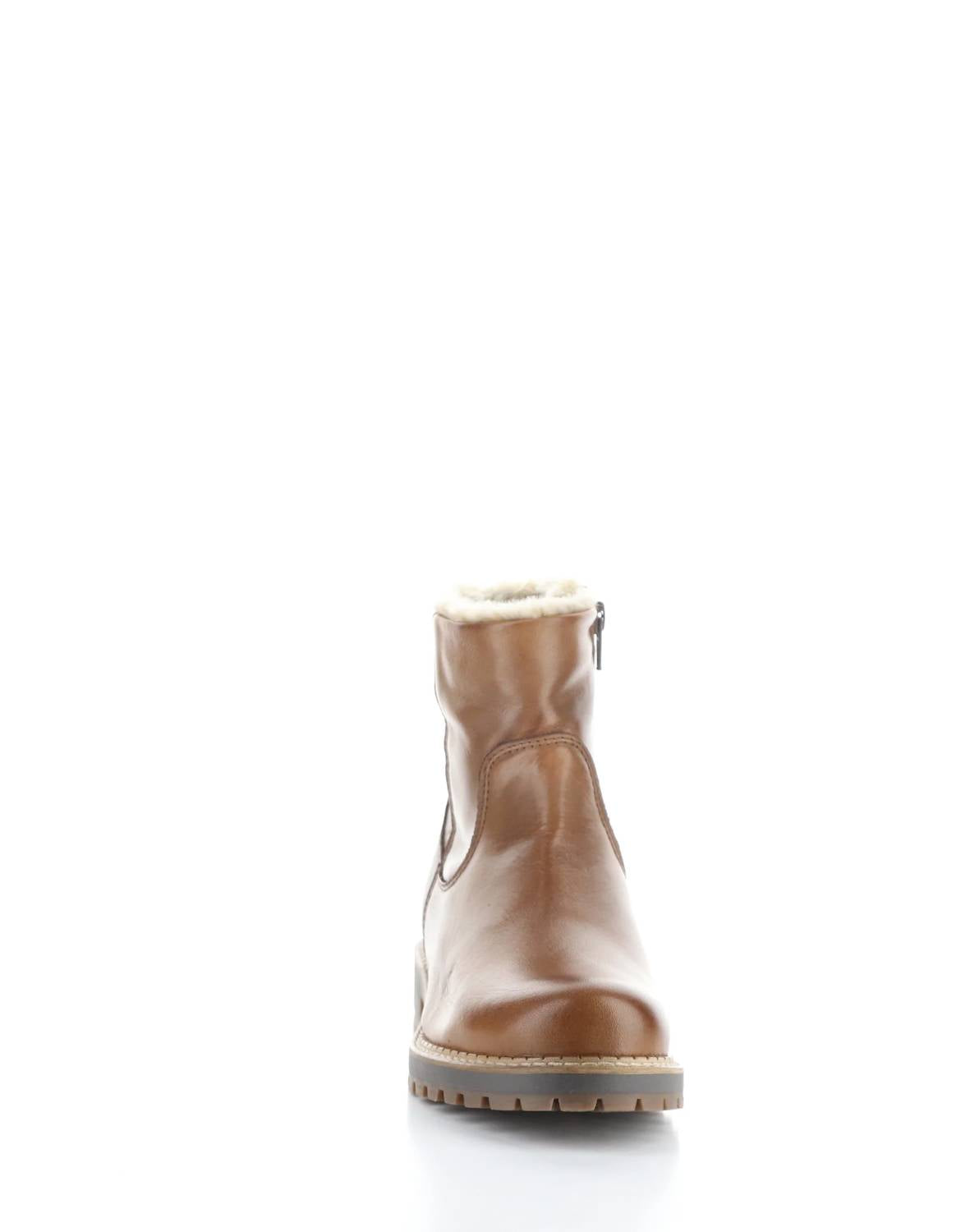 Step into comfort and style with the Women's Calib Boot by Bos. & Co., ideal for any winter forecast. This Rich Tan bootie features a side zip closure and a round toe design, all while offering a cozy faux-fur–lined shaft and a supportive memory foam footbed. Crafted with a leather upper, an acrylic-and-polyester faux-fur merino wool lining, and a durable rubber sole, this ankle boot is made in Portugal. With a 1 1/2" heel, it's perfect for New Year's Eve festivities, keeping feet warm and dry with its Aquastop water-repellent technology.