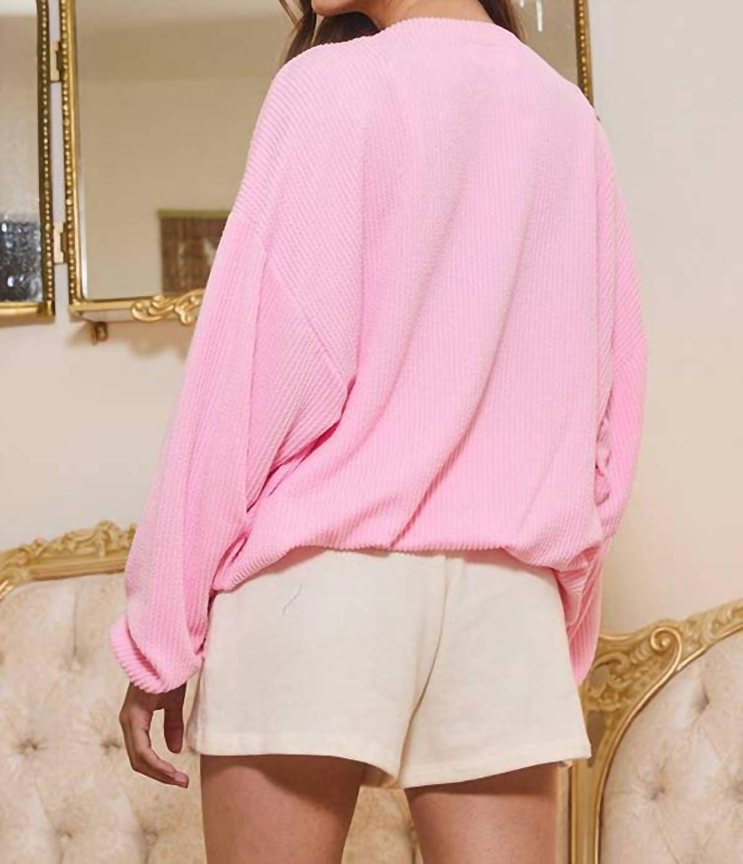 Introducing the Print Comfy Oversize Ribbed Graphic Sweatshirt by BUCKETLIST in a charming Baby Pink. This women's sweatshirt showcases long sleeves and is made from soft polyester with a playful bow graphic. Designed with a crewneck and a convenient pull-on closure, it is a cozy and stylish addition to your streetwear wardrobe. Care instructions: Hand wash to keep it looking delightful season after season.