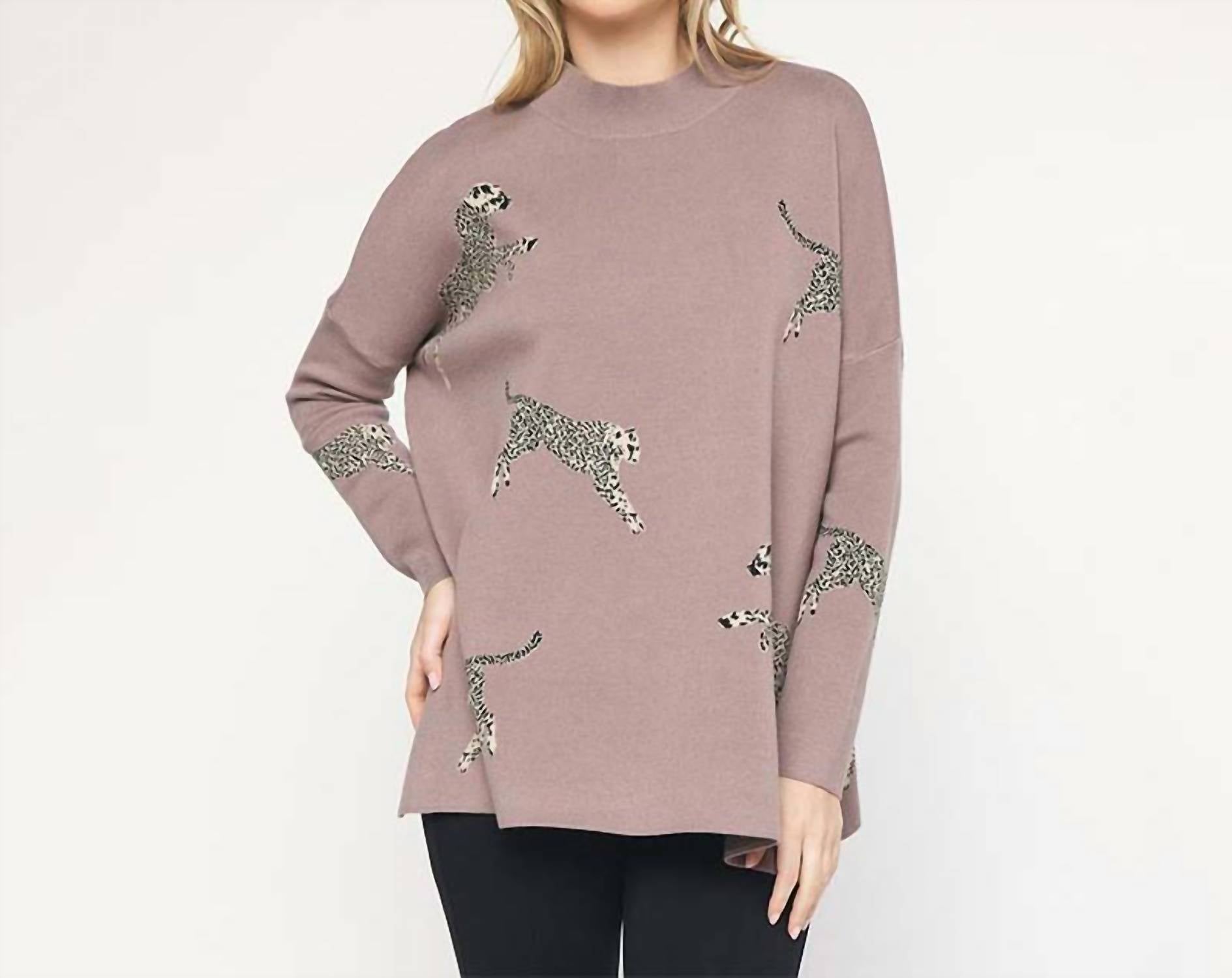 Unleash your wild side with the Leopard Sweater Top by Entro, an eye-catching piece in a warm mocha shade. This women's cardigan features a stylish mockneck and long sleeves, crafted from a viscose blend comprising 50% Viscose, 28% Polyester, and 22% Nylon. With a pull-on closure, it offers effortless wear, perfect for travel or fall festivities like Thanksgiving. Care: Machine wash.