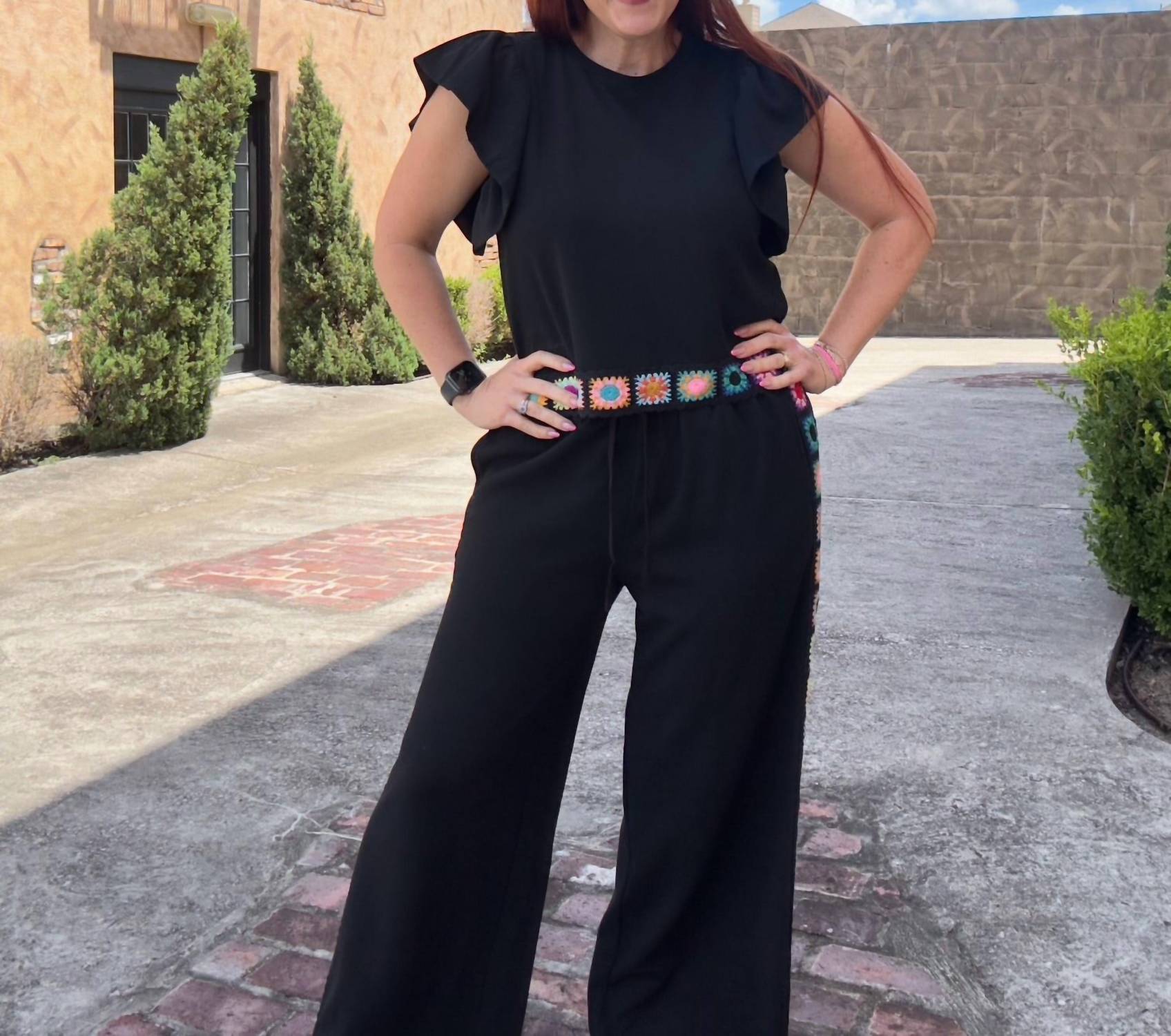 Embrace the retro elegance, offering a chic addition to any wardrobe. With a stylish patterned design in black, high-rise, wide-leg pants feature a convenient pull-on closure and boast a relaxed fit ideal for travel and boho chic occasions. Addition of pockets ensures practicality without sacrificing style. Crafted for autumn wear, care for these versatile knit pants by hand washing them to preserve their unique detailing.