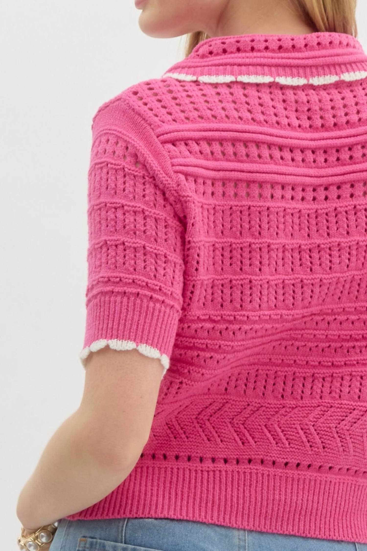 Entro - Solid Pointelle Sweater Knit Top