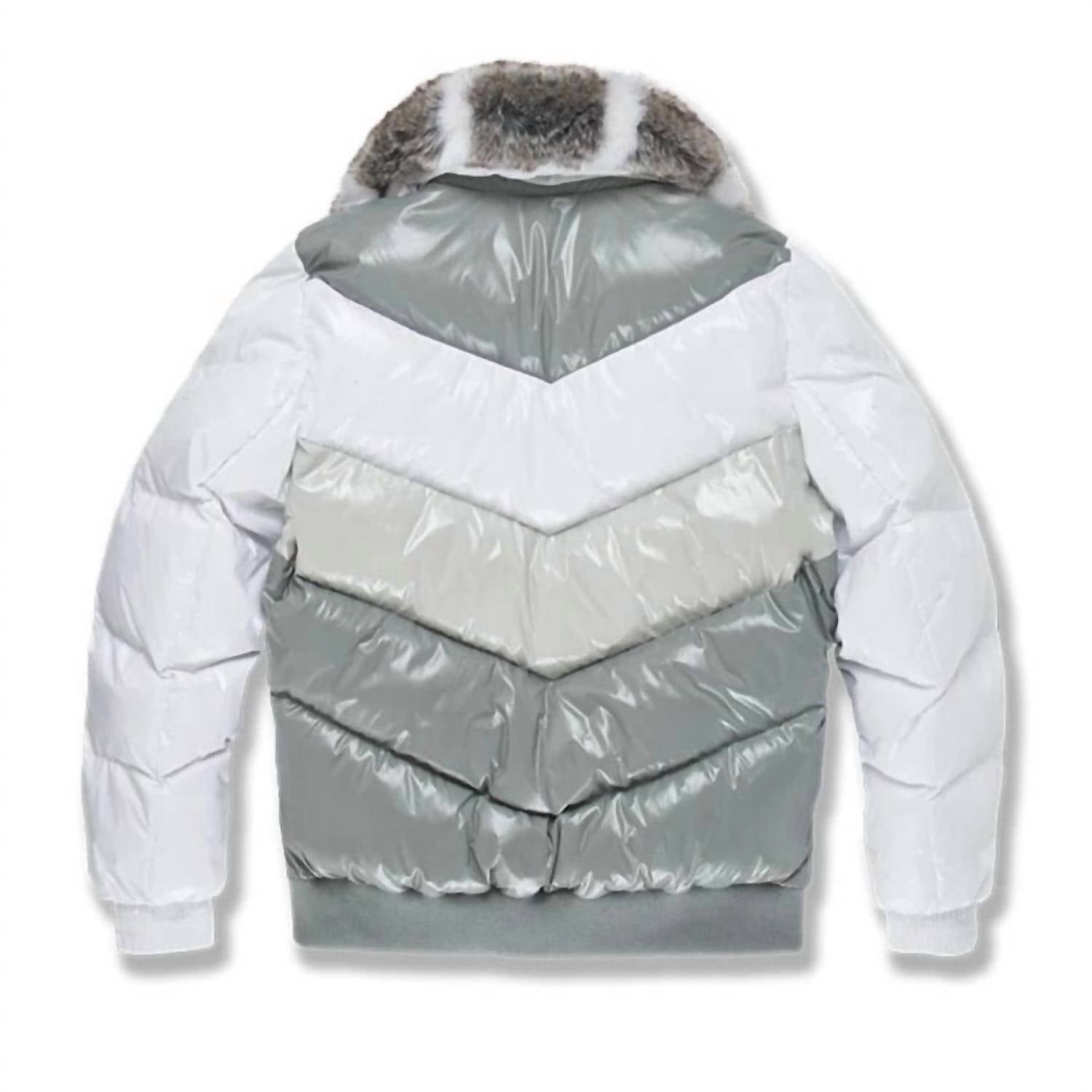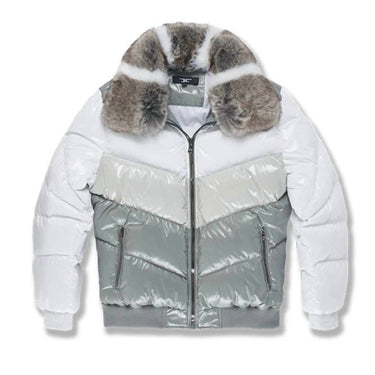 Introducing the Boys Jordan Craig Sugar Hill Nylon Puffer Jacket in Arctic White, designed by JORDAN CRAIG for stylish warmth. With long sleeves and a solid pattern, this puffer jacket features a 100% nylon laqué shell with quilted padding and a mockneck design. The zip closure with Jordan Craig branded zippers, hidden side pocket zippers, and a removable faux fur collar add functional style. Lined with 100% polyester, this piece requires dry cleaning and should be line dried.