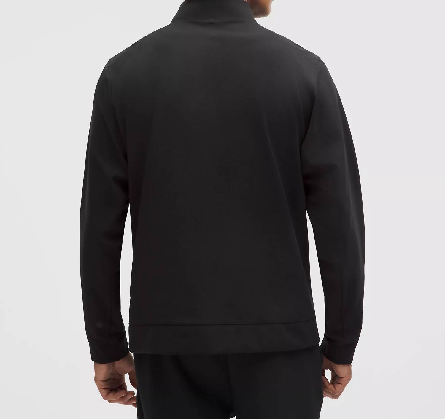 The Men's Sojourn Jacket by lululemon is a perfect blend of style and function for your athleisure wardrobe. This long-sleeve jacket in solid black features a classic fit with a mockneck and zip closure, tailored for casual yet sophisticated wear. Made from 100% Elastomultiester with pockets composed of 86% recycled polyester and 14% elastane, it's designed for optimal comfort with its four-way stretch and sweat-wicking properties. With practical zippered chest, hand, hidden media, and coin pockets, this jacket is ready for any fitness or workout occasion. Care: Machine wash cold, tumble dry low.
