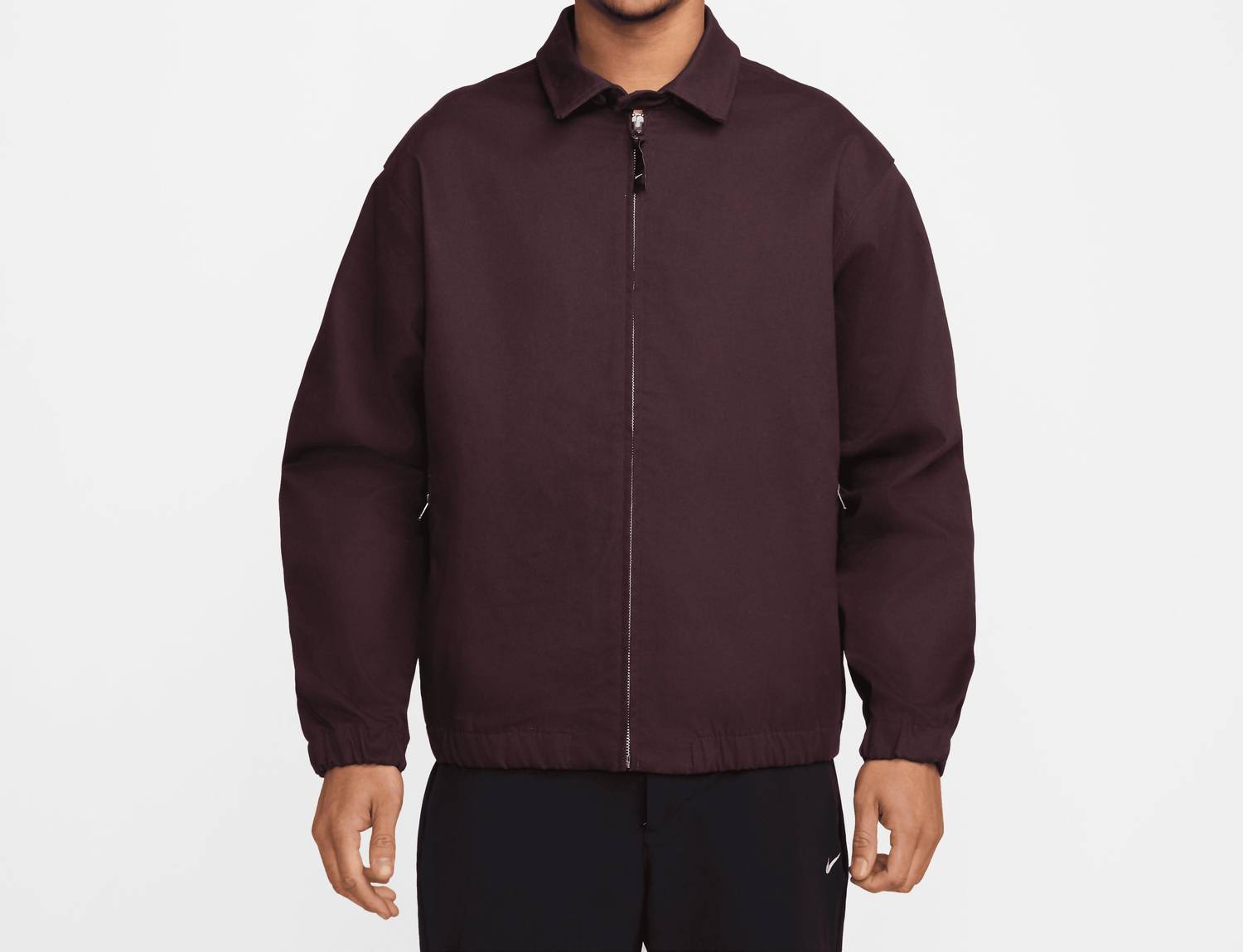 This SB Twill Premium Jacket features a stretch 98% cotton, 2% spandex blend, zip closure, and zippered pockets for durability and convenience. Its bomber silhouette includes a buttoned collar extender, elastic cuffs, and hem.