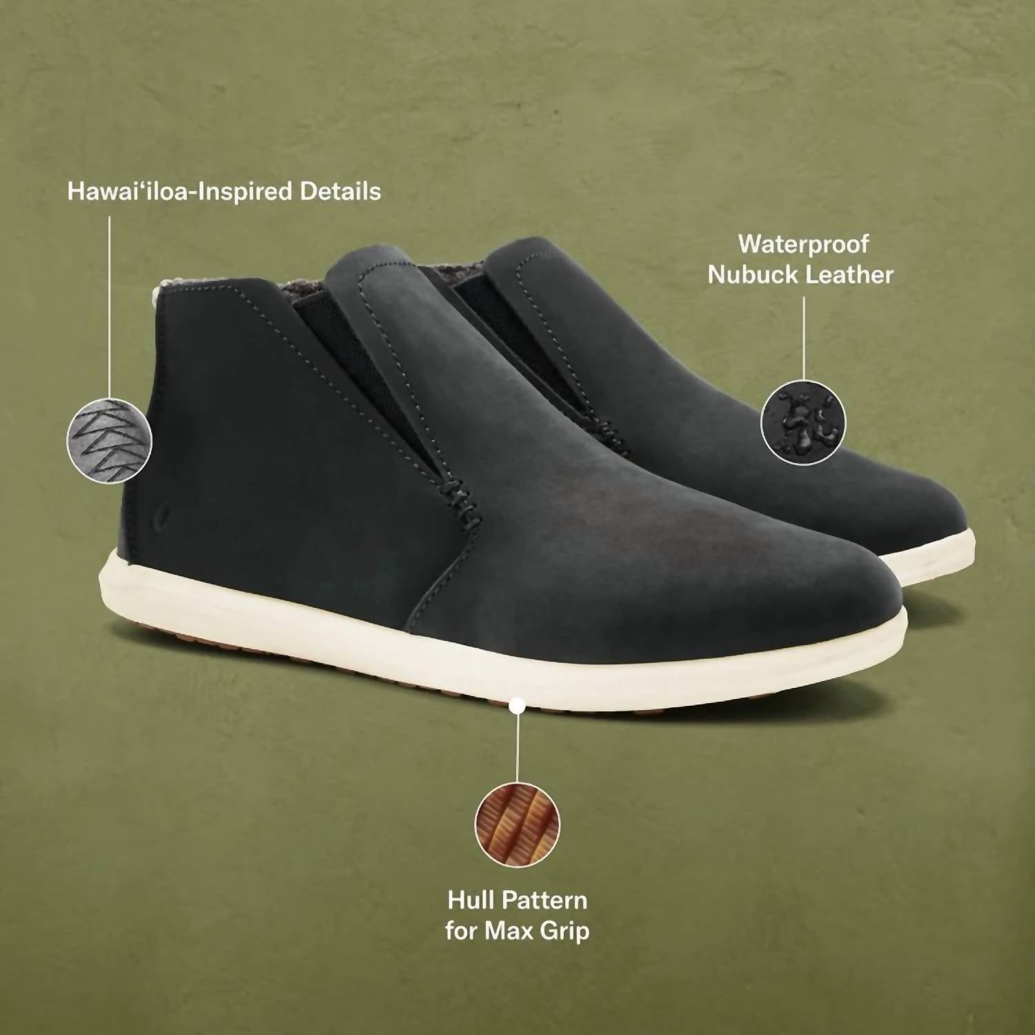 Discover the Women's Hawai'iloa Manu Hope Waterproof Booties Wide by OluKai, a testament to fine craftsmanship and inspired design. These boots feature waterproof leather in a chic Lava Rock/off White color, and are lined with wool for enhanced warmth and comfort, making them ideal for spring travels and 90s fashion trends. With a round toe and flat heel (1" & under), these ankle boots are perfect for long journeys, offering all-day comfort. Perfectly suitable for various occasions, especially when celebrating the 4th of July, these boots are designed for those who seek style and functionality. For the best fit, it is recommended to size up half a size.