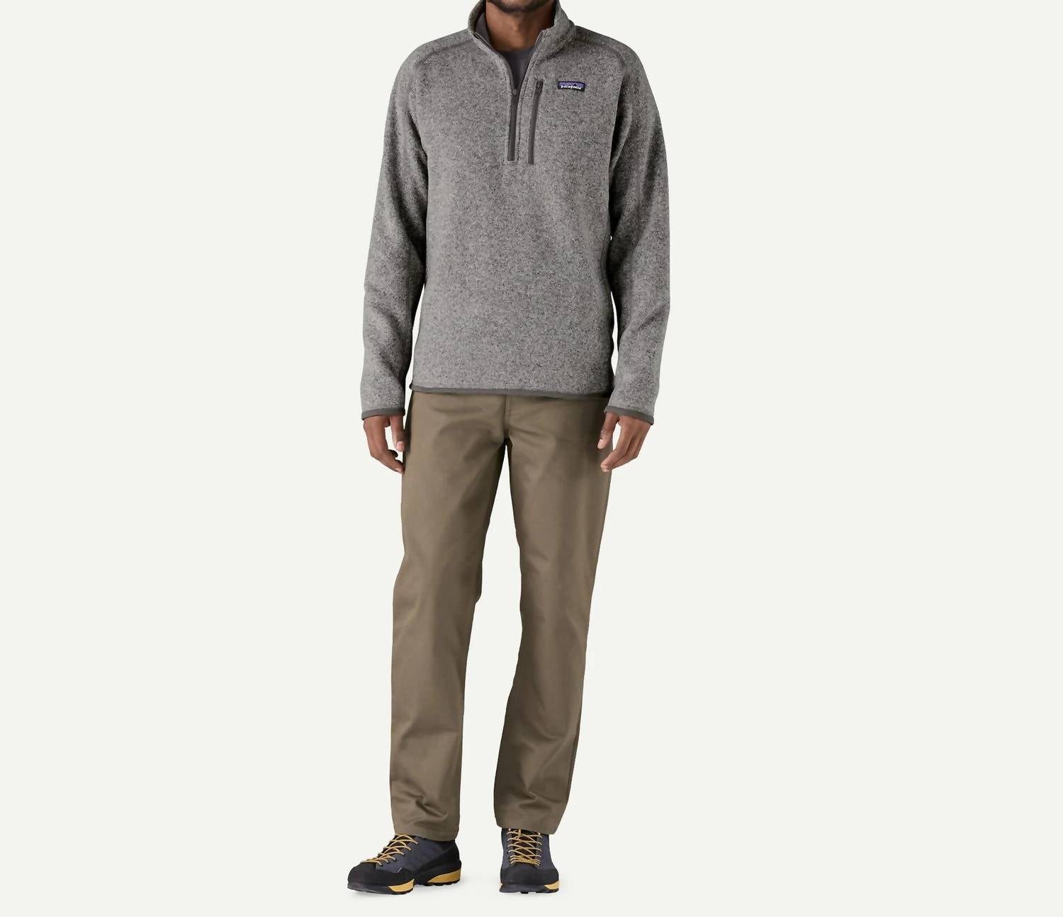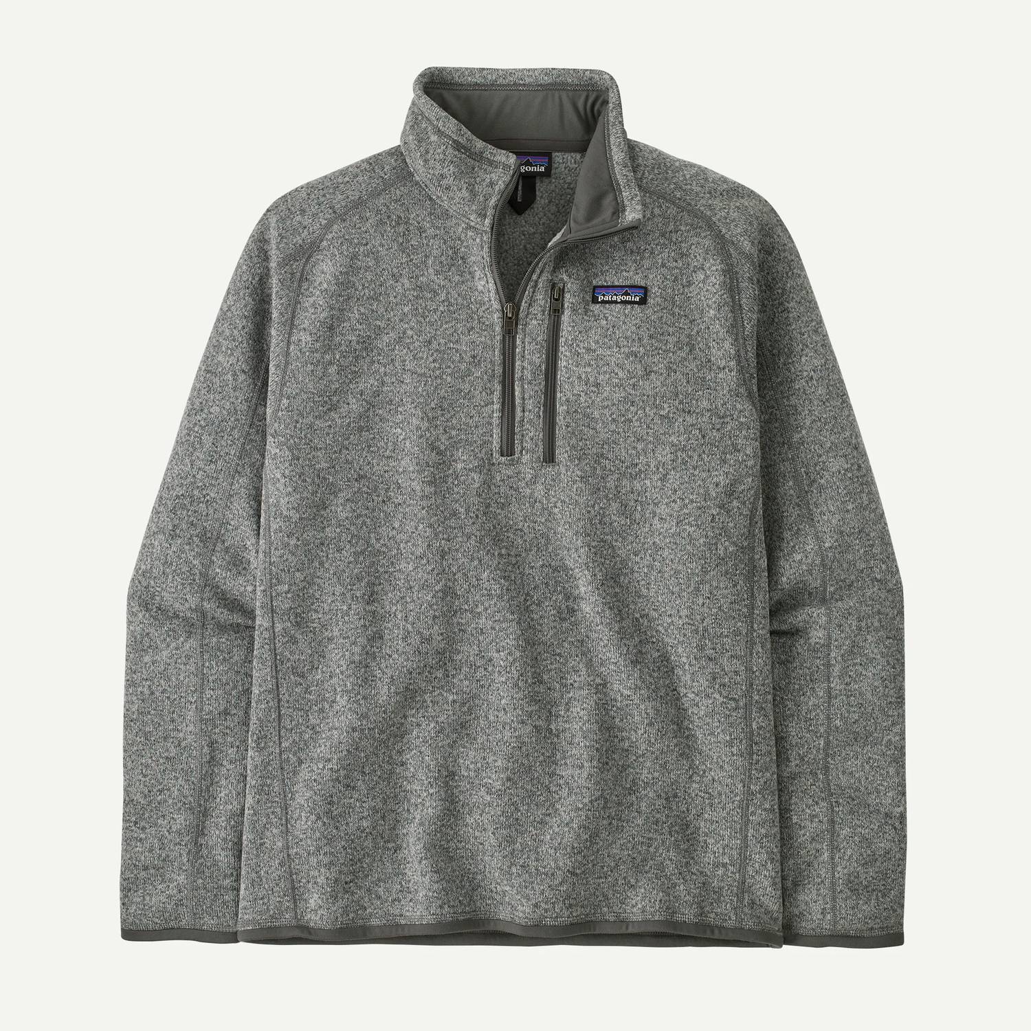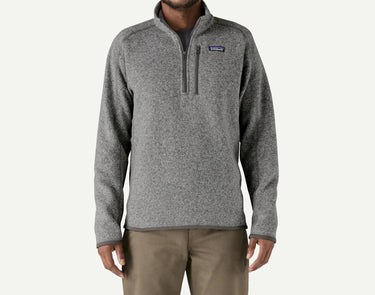Introducing the Men's Better Sweater 1/4 Zip by Patagonia in a sleek stonewash color, perfect for the athleisure trend this fall. This long sleeve zip-up is crafted entirely from 100% recycled polyester sweater-knit fleece, offering warmth and comfort while supporting sustainability. With a quarter-zip and stand-up collar, this top is made in a Fair Trade Certified factory in Thailand, ensuring quality and integrity. It features a practical zip closure and a vertically zippered left-chest pocket for essentials. For easy care, machine wash and tumble dry as needed.