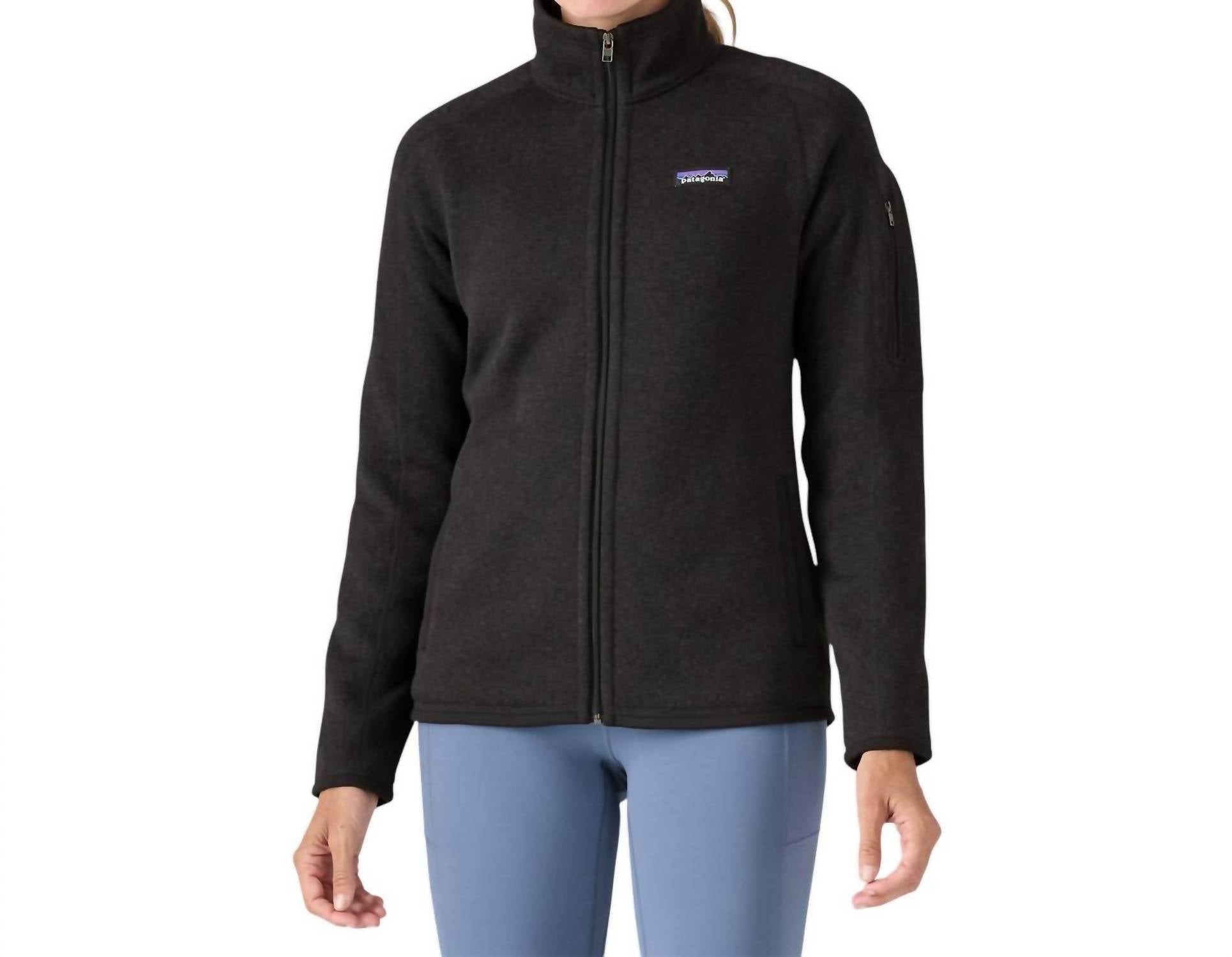 A jacket so versatile you can literally wear it with anything. Introducing the Women's Better Sweater Jacket by Patagonia, a perfect blend of style and sustainability. This long-sleeve casual jacket is crafted from 100% recycled polyester fleece, providing warmth and comfort. Designed with raglan sleeves and princess seams, it contours to your body for a flattering fit, with a full-zip closure and stand-up collar. Complete with two zippered handwarmer pockets and a zippered pocket on the upper-left sleeve, this jacket is hip-length and fits true to size. Machine washable in cold water for easy care.