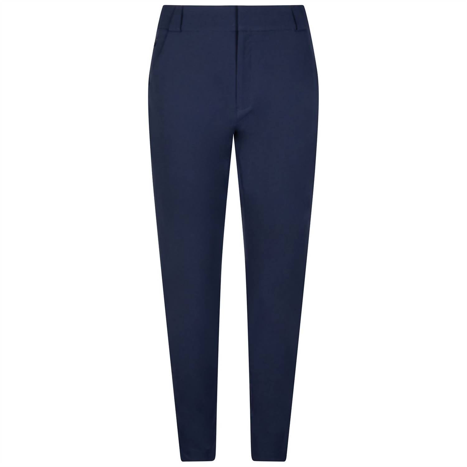Elevate your wardrobe with the Women's Surge Performance Ankle Pant by PETER MILLAR, crafted from lightweight recycled polyester and spandex, delivering comfort with four-way stretch and moisture-wicking technology. These navy trousers feature a slightly tapered leg and a stylish petal hem, perfect for transitioning from the office to leisure activities. Designed for practicality, they are machine washable and can be tumble dried on low heat, eliminating the need for ironing or dry cleaning. The solid pattern and functional pockets enhance this modern classic for the contemporary woman.