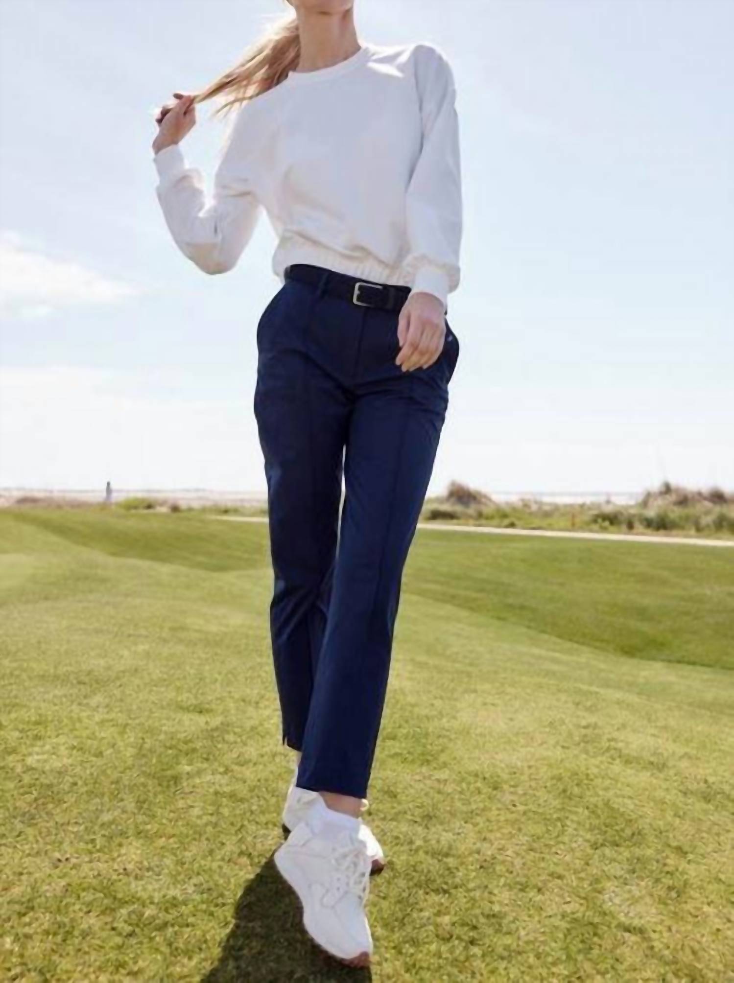 Score style points with the Chapel Performance Pant. With pintuck accents and a classic ankle hem, these women's performance pants are ideal for teeing off in coastal comfort. They feature side pockets for style and function, and added stretch to ensure optimal flexibility. Wicking. UV Protection. 27.5" inseam