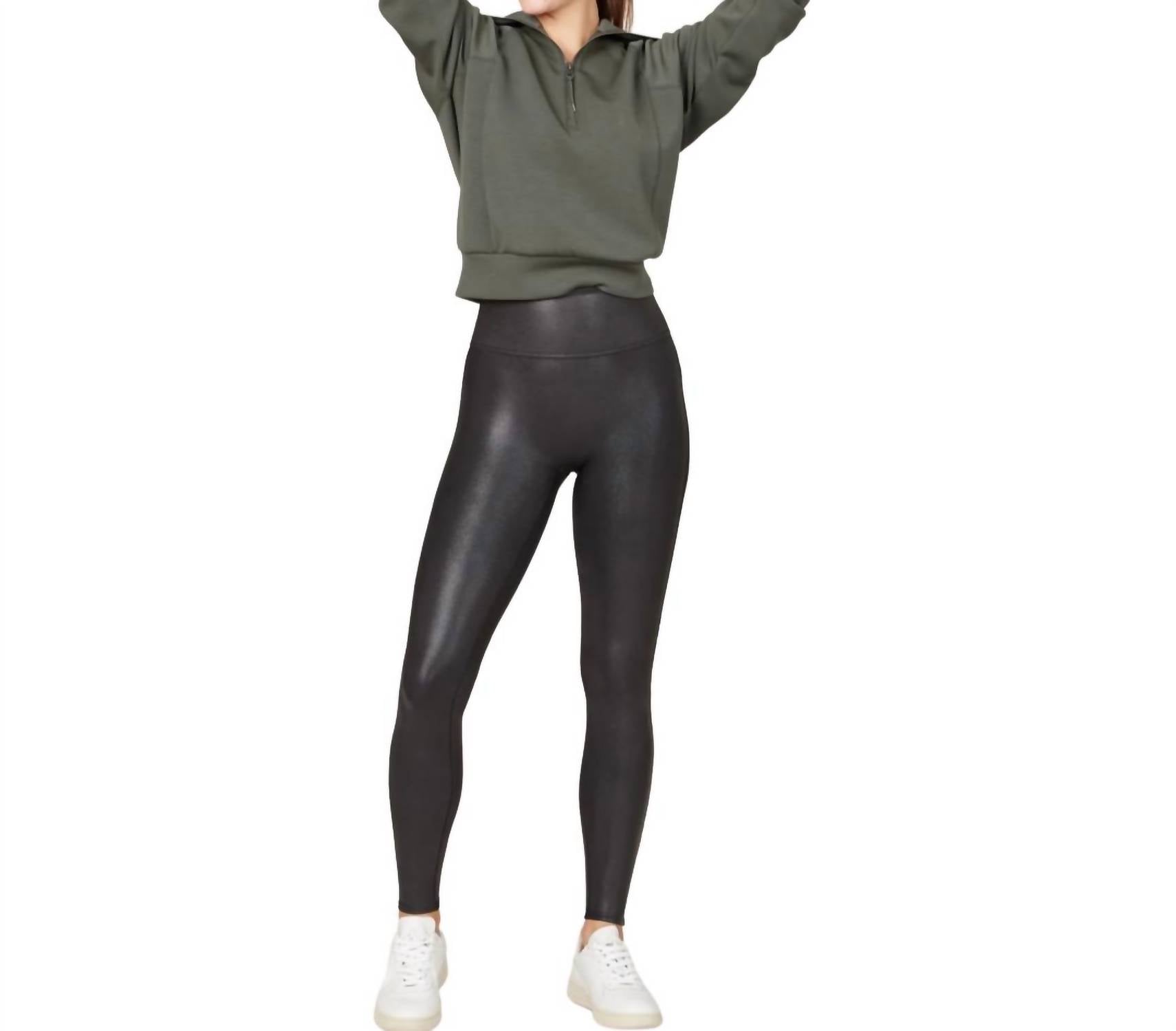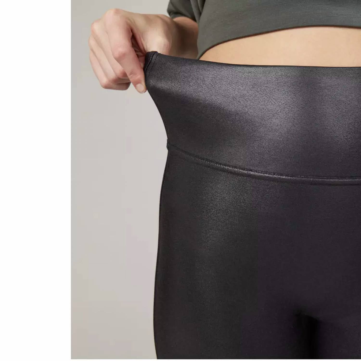 Discover the Faux Leather Leggings by Spanx, a best-selling favorite designed to flatter with style and comfort. Composed of sleek, smoothing faux leather, these leggings contour with a skinny leg design and feature a contoured Power Waistband for core compression. Made in Vietnam with a regular fit, they offer a chic, solid black look without the need for closures. Ideal for activewear enthusiasts, these leggings are a seamless addition to any wardrobe.