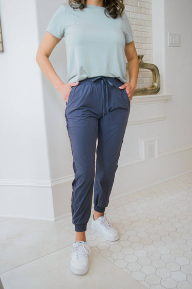 Stay on-trend with the Athletic Jogger Pants by Thread & Supply, designed for both style and comfort. These navy joggers feature a pull-on closure and a tapered leg, crafted from a nylon and polyester blend. Perfect for errands or casual outings, they include functional pockets for convenience. Ideal for summer athleisure activities, care is simple with machine wash instructions.