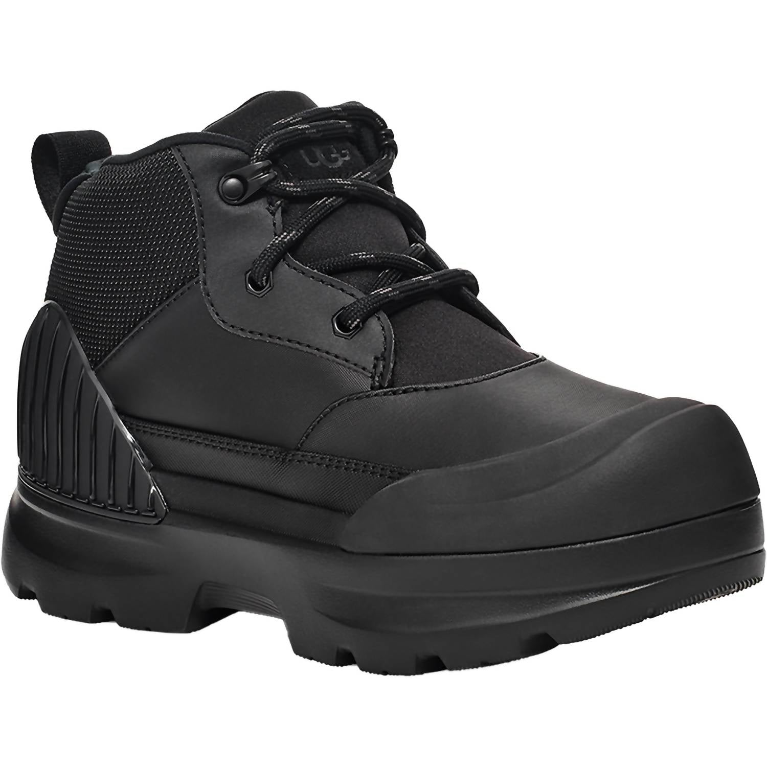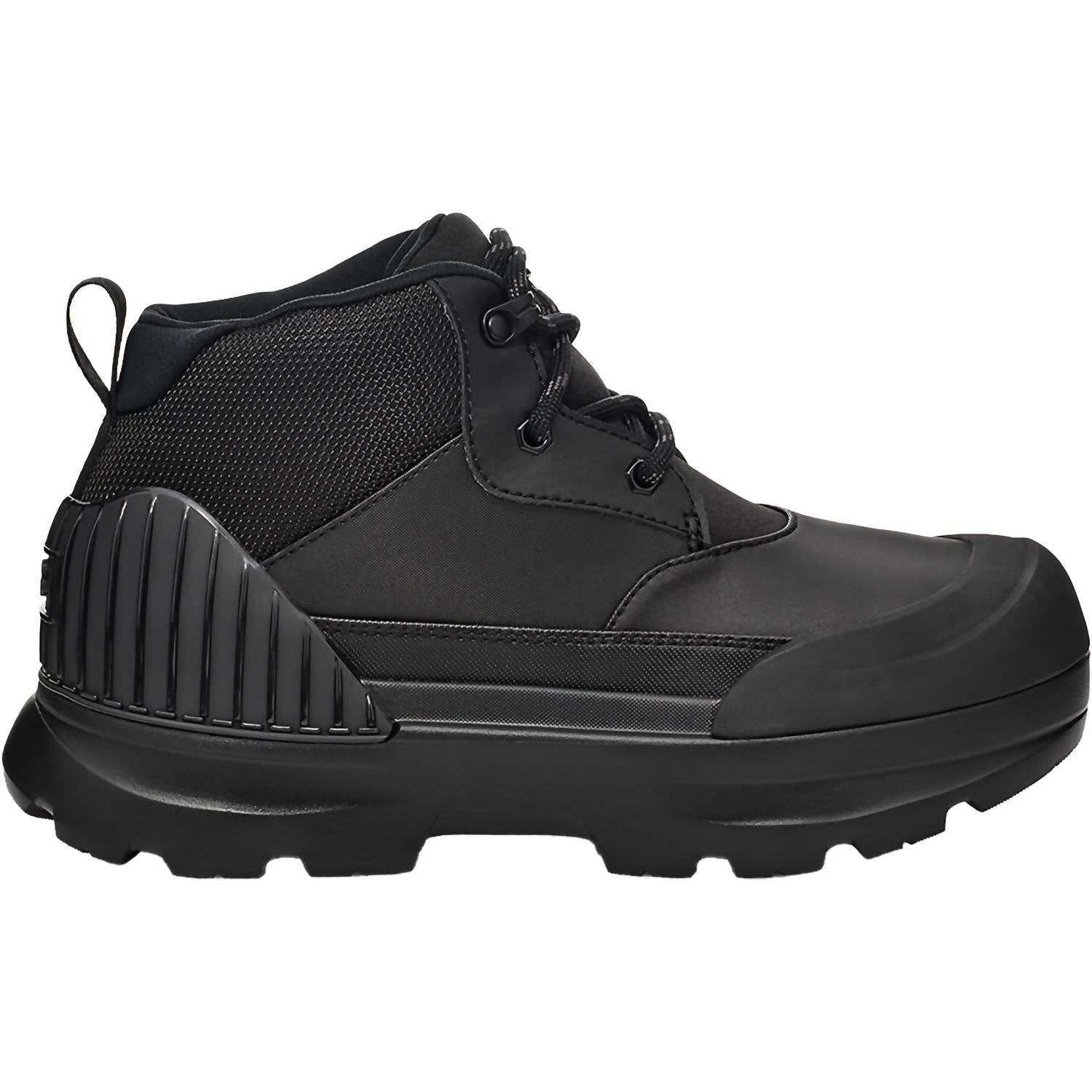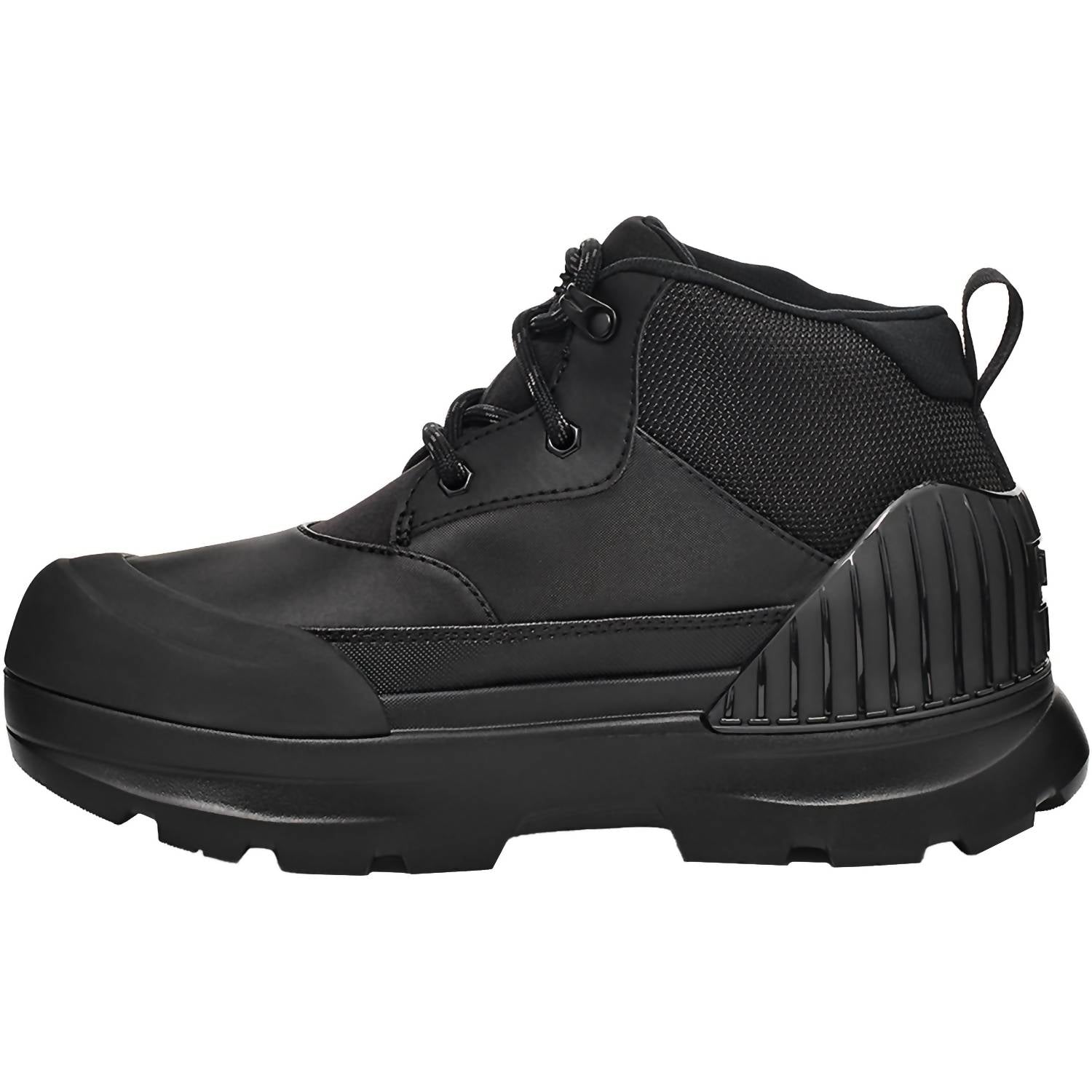 Step into the future with UGG Women's Neumel X Rain Boots in sleek black, designed for ultimate comfort and weather resilience. Featuring a waterproof construction with a gusseted tongue and water-repellent coating, these boots are perfect for transitioning through the seasons. Crafted from synthetic leather and textile, with recycled poly laces and a sugarcane EVA midsole/outsole, they're lightweight yet durable. Finished with a padded collar, mesh lining, and the iconic UGG logos, these boots are ideal for winter adventures and stylish enough for a New Year's Eve holiday party.