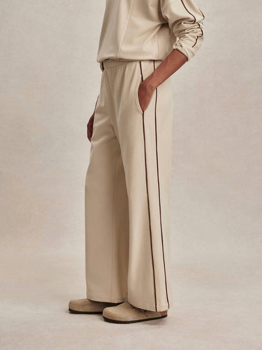 Introducing the Brushed Rib Wide Leg Pant by Varley, perfect for your summer vacation wardrobe in a chic Cement Marl/Bitter Chocolate stripe. These high-rise, wide-leg pants made from polyester ensure a comfortable fit, featuring a convenient pull-on closure. Designed with practicality in mind, they include functional pockets and a 12-inch rise with a 30-inch inseam. For care, simply machine wash and line dry to maintain their 90s fashion appeal.