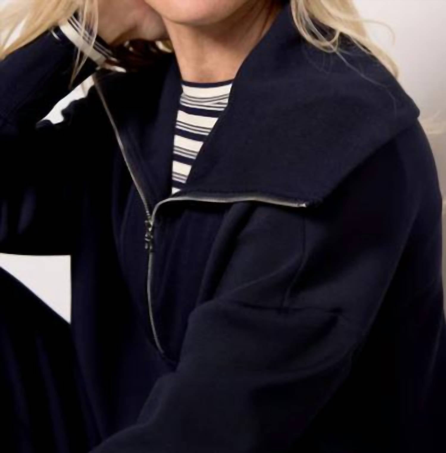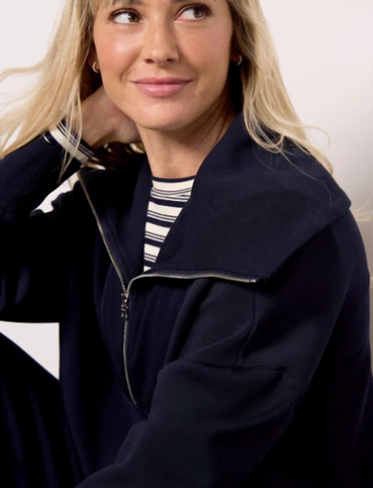 Stay warm and stylish in this versatile and effortlessly cool knitwear staple. Wear it alone or layered, it's the perfect sweater for the season and you'll wish you had it in every color. Crafted for comfort and style, this half-zip sweatshirt by Varley is made from their signature DoubleSoft® fabric and features a relaxed fit, dropped shoulders, and an exaggerated foldover collar. Pair with The Cargo Pant 25" for the ultimate loungewear set. Details Zip Front Neckline: Quarter Zip Measurements Length from Shoulder to Hem: 23.4" Material & Care Material: 72% Viscose, 23% Polyester, 5% Elastane Knit Care: Machine Wash,Wash Cold,Do Not Tumble Dry,Dry Flat,Do Not Bleach,Iron Low,Wash Inside Out Style #: VAR02086