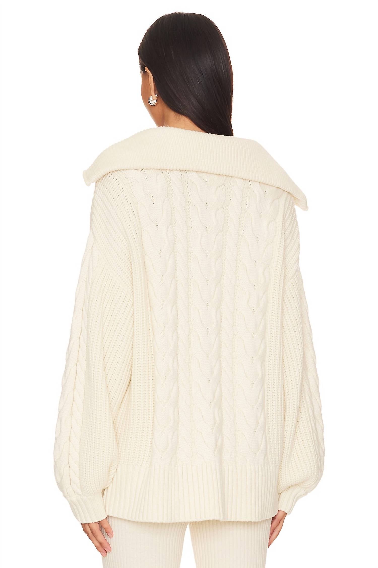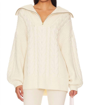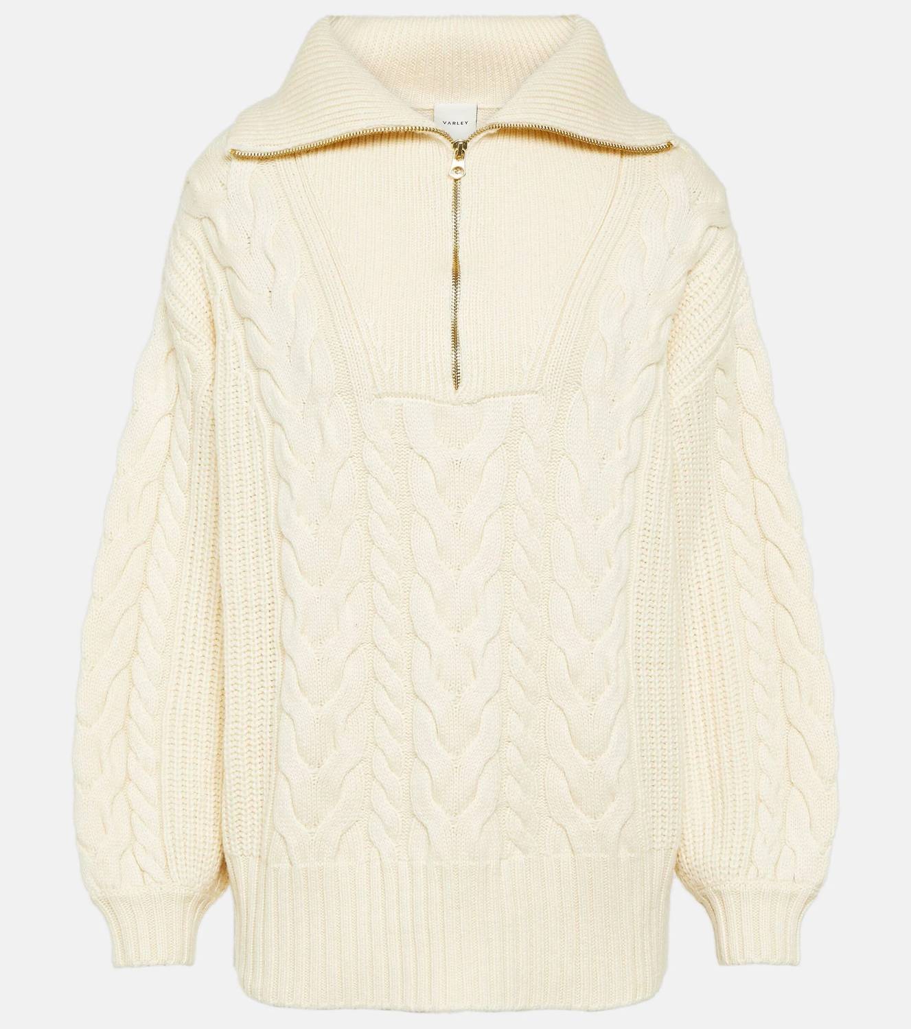 Introducing the Daria Half Zip Cable Knit Sweater by VARLEY, a luxurious winter wardrobe must-have. This women's sweater in Winter White features long sleeves and is crafted from a comfortable blend of 48% nylon, 27% viscose, 20% wool, and 5% cashmere. Originating from China, its oversized chunky silhouette is defined by a textured cable knit design with an exaggerated ribbed collar and a partial zip closure. For care, hand wash is recommended to maintain the softness and integrity of the knit.