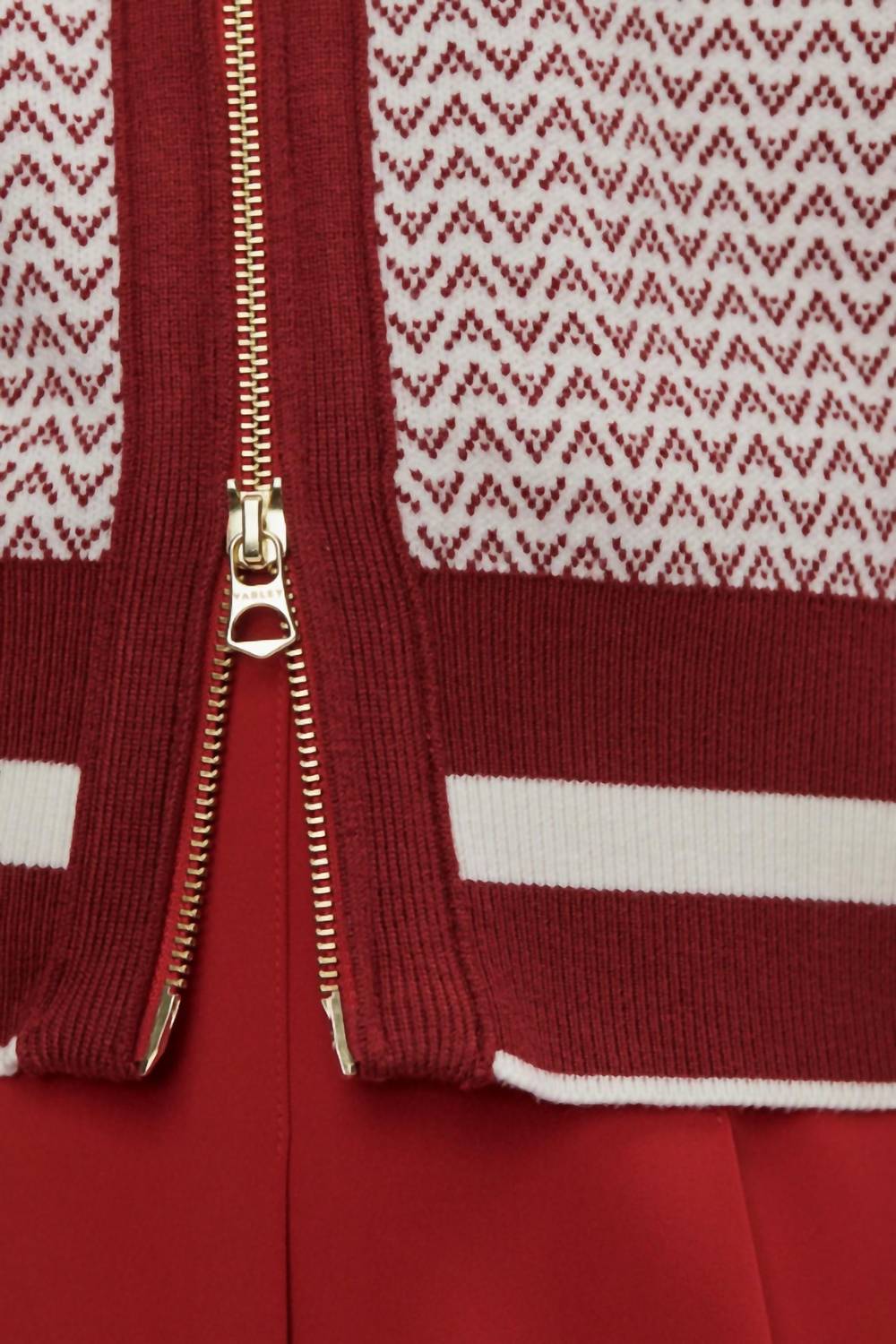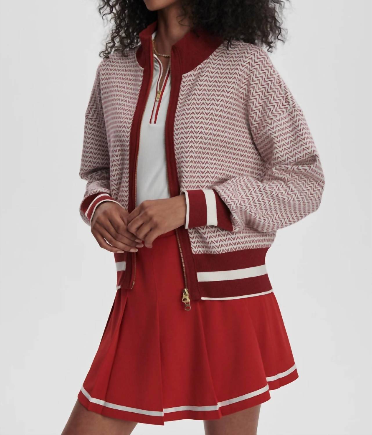 Elevate your sporty-chic style with the Walter Knit Jacket by VARLEY, featuring long sleeves for a stylish touch. Crafted from a comfortable viscose blend, this jacket showcases a striking Red Dahlia and White color block design. The crewneck and classic zip closure enhance its sophistication, making it perfect for a dinner party or a streetwear look. Care for this jacket by machine washing and laying it flat to dry, ensuring it remains a staple in your spring wardrobe.
