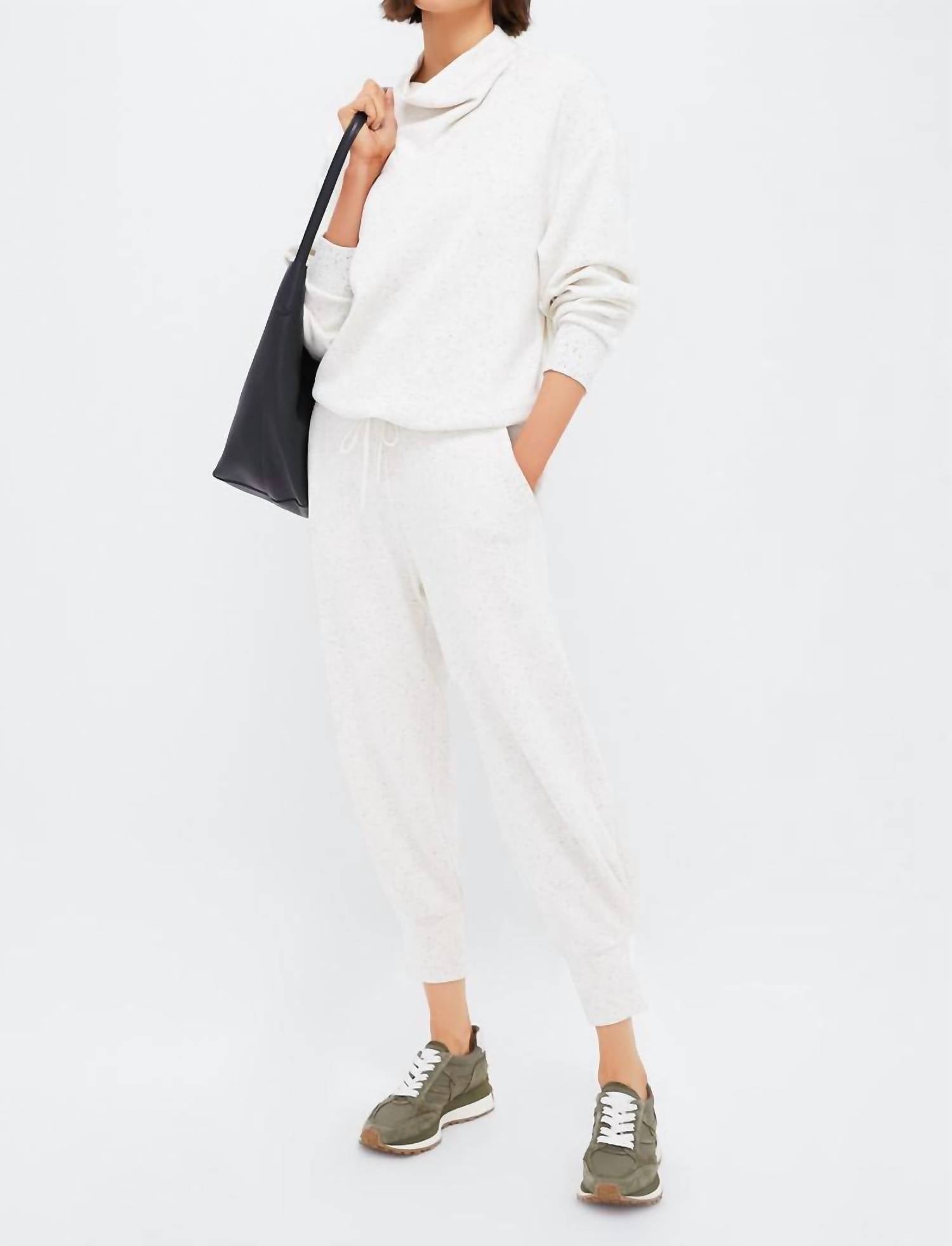 Discover the Women's Wide Leg Pant by VARLEY, a minimalist statement piece in Ivory Marl Fleck perfect for your summer vacation wardrobe. Crafted for effortless elegance, these pants feature a pull-on closure and a classic fit with a straight leg style. The solid pattern enhances its timeless appeal. Embrace understated chic with this essential addition to your collection.