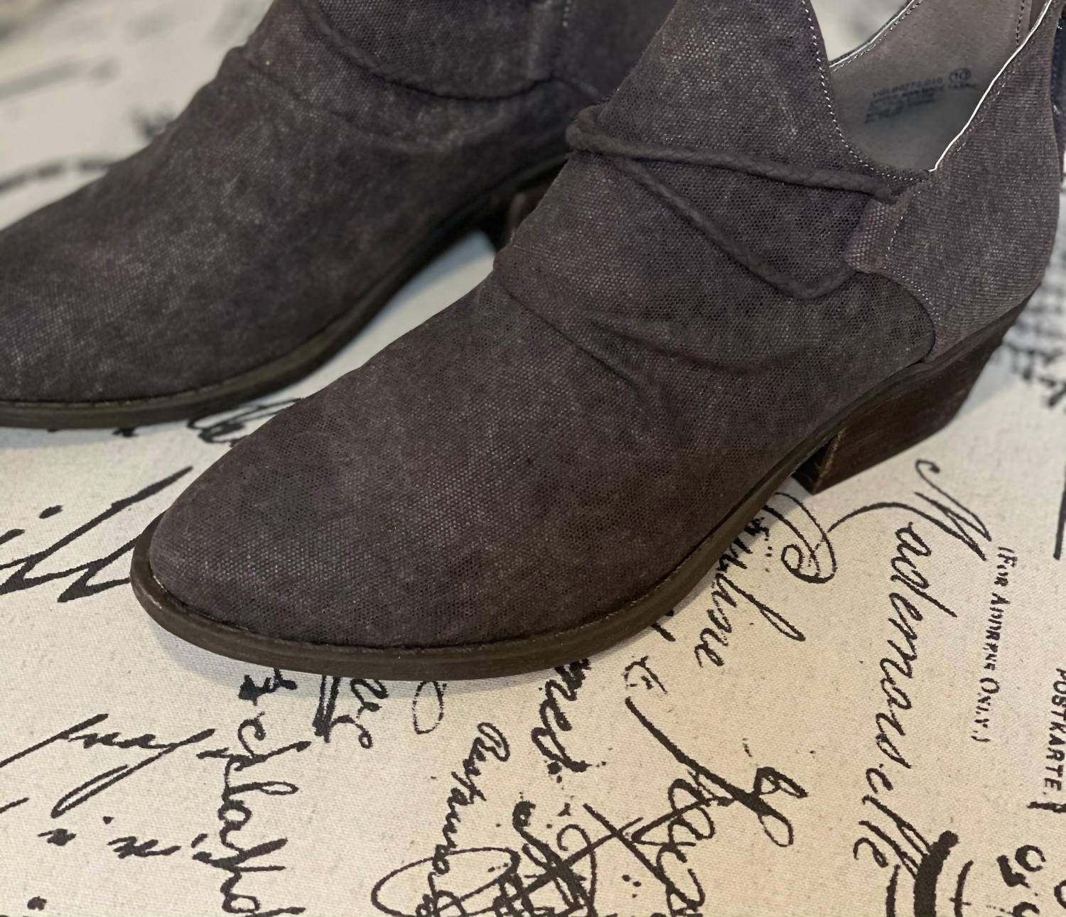 Step into style with the Women's Spartan 2 Ankle Zip Booties by Very G in a versatile shade of grey. These ankle booties are crafted from washed charcoal canvas featuring a chic criss cross rope detail and a stylish side v-cut. The cushioned footbed ensures comfort with every step, while the 2" block heel adds the perfect lift. Closure: Back zip. Ideal for adding a touch of rustic charm to any ensemble.