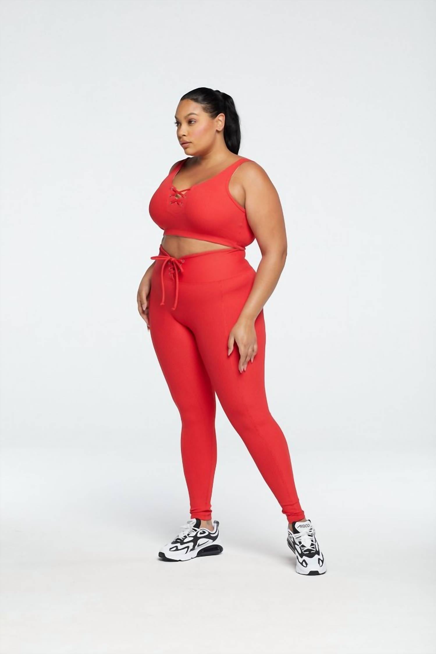 Introducing the Ribbed Football Leggings by YEAR OF OURS, a versatile addition to your activewear collection in a vibrant red hue. These full-length leggings feature an ultra high rise with a tie closure, designed to stay put through intense activities. Crafted from a supportive Nylon/Spandex Active Rib blend, this slim fit and tapered leg design ensures comfort and style. Made in the USA, they are easy to care for: simply machine wash cold and lay flat to dry.