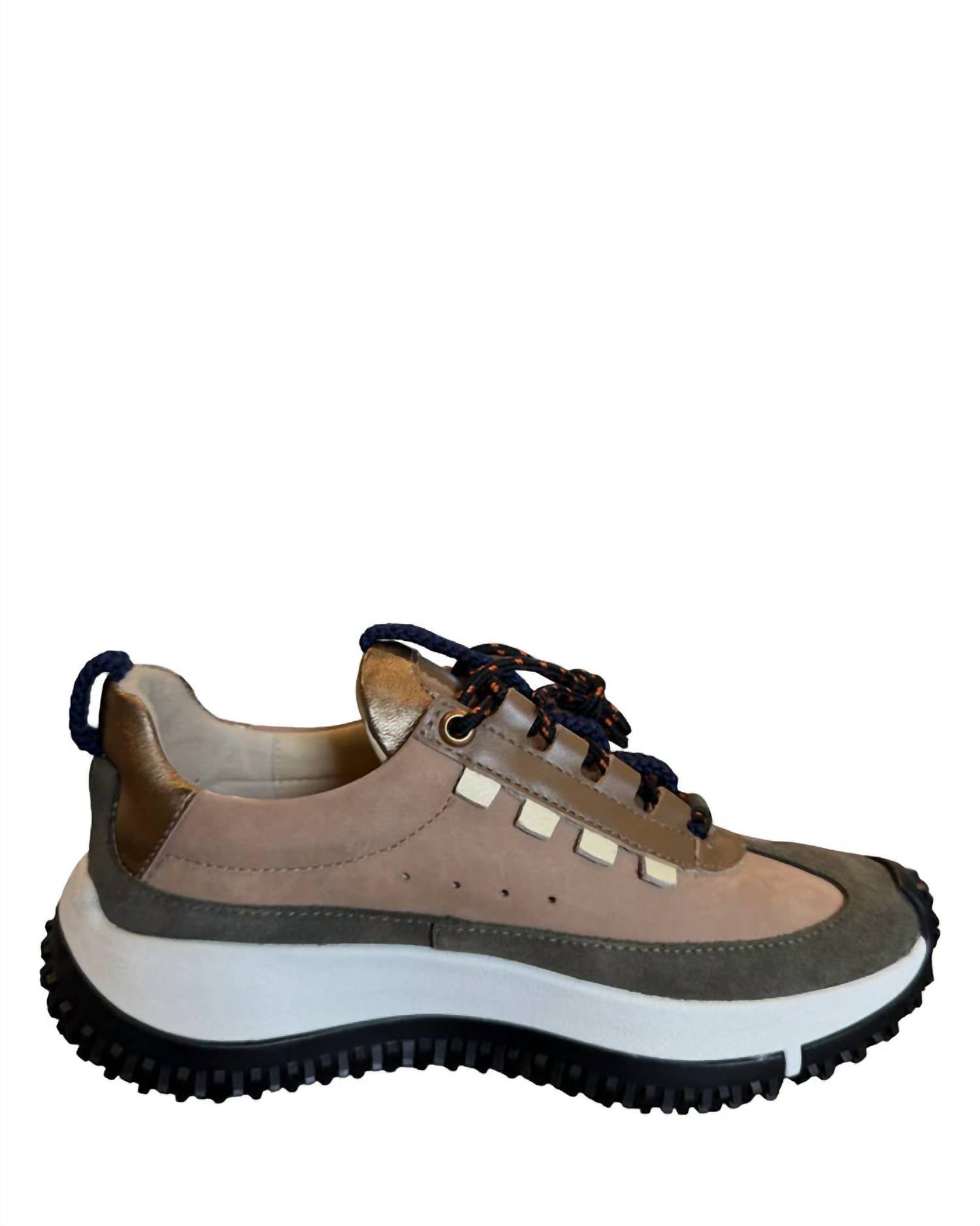 Cute, functional, and comfortable. These sneakers check all the boxes. Introducing the Women's Kapok Pinto Mud Sneakers by 4CCCCEES, an embodiment of retro flair blended with sophisticated craftsmanship. This footwear, in a stylish Brown Taupe, features a leather composition with a layered split-suede finish for a tonal aesthetic. Its design includes a comfort-enhancing padded heel counter and a spiky TPU outsole inspired by tree bark textures, providing excellent traction and slip resistance. With a low flat heel measuring 1.77 inches, these sneakers are perfect for travel and streetwear during the spring, making them an impeccable choice for those who value both fashion and function.