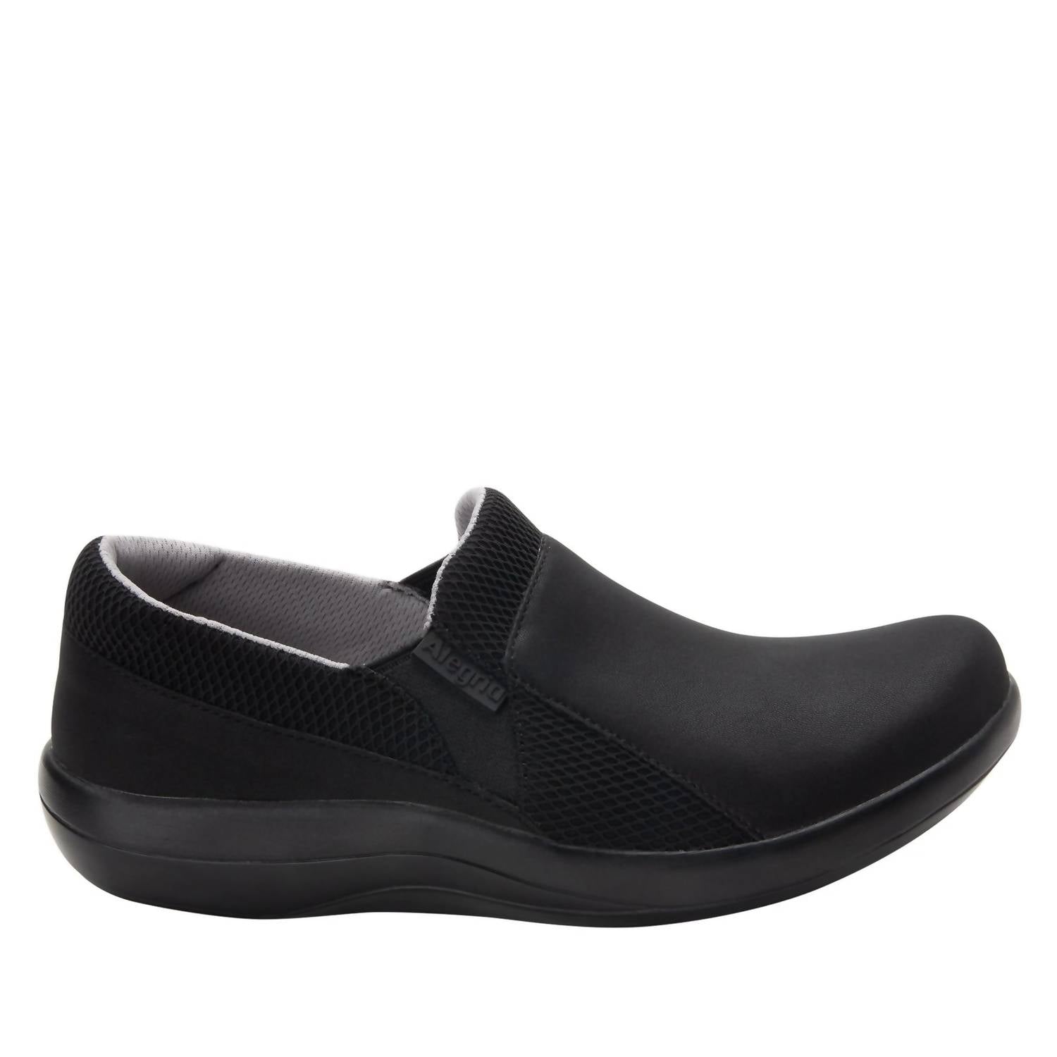 Elevate your footwear collection with the Alegria Women’s Duette Shoe in sleek black, offering both style and comfort. Featuring a man-made upper in various patterns and enhanced with double elastic gore for easy on-and-off wear, this shoe provides versatility and ease. The removable Alegria footbed, along with enhanced shock absorption and dual-density polyurethane slip-resistant outsole, ensures all-day comfort and stability. Imported and weighing just 8 oz per shoe, these shoes are ideal for summer and cater to a wide shoe width with a round toe and flat heel.
