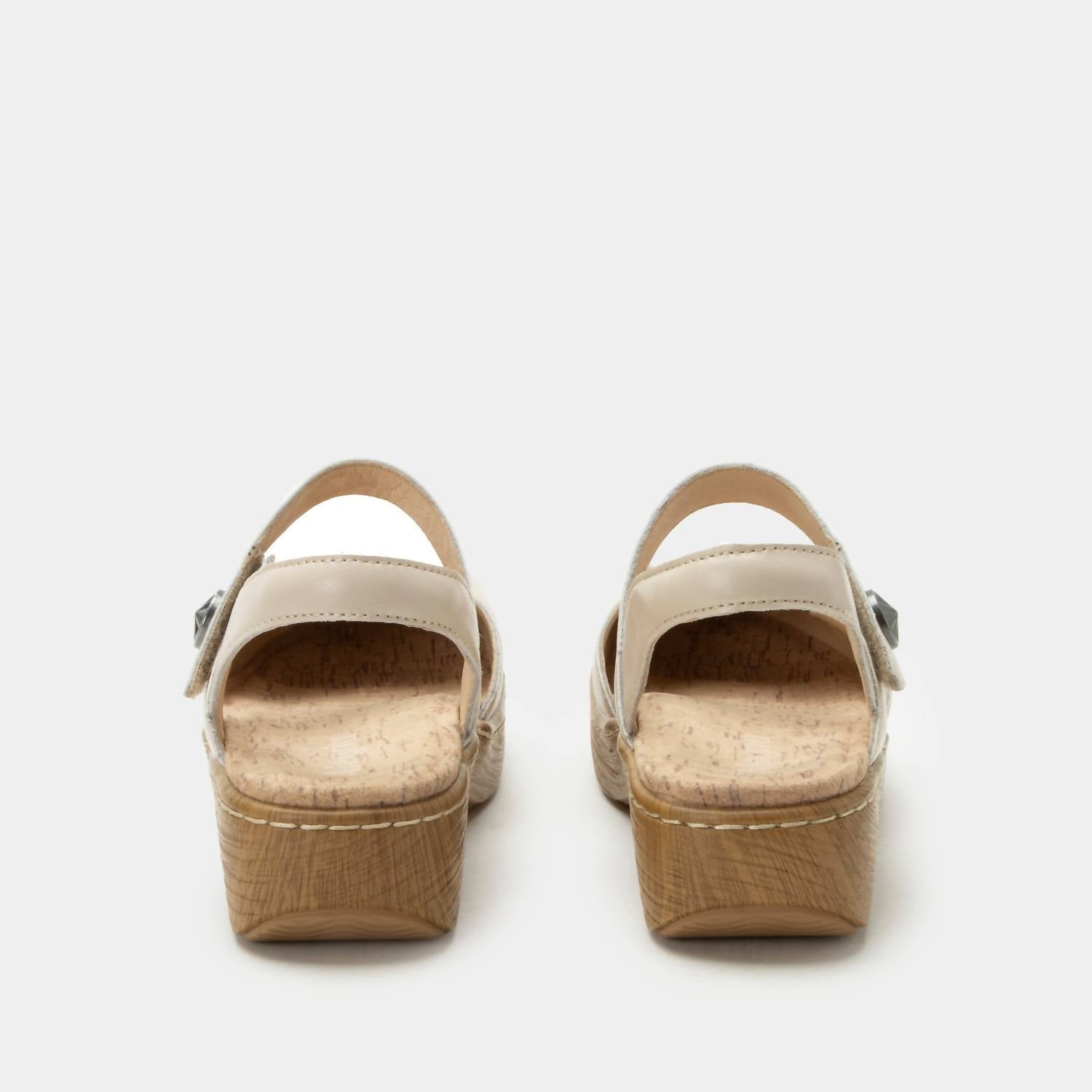 Discover the Women's Opal Sling-back Sandal by Alegria, a chic fusion of clog and sandal in a serene Stone color. Crafted with a stain-resistant leather upper, this sandal promises durability and style. It features a padded sling-back strap with an adorable charm, an adjustable hook-and-loop ankle closure, and a slip-resistant polyurethane outsole for confident steps. The leather and microsuede lining, coupled with a durable microsuede footbed, ensures all-day comfort, while the sandal's heel height of 1 3/4" offers just the right lift.