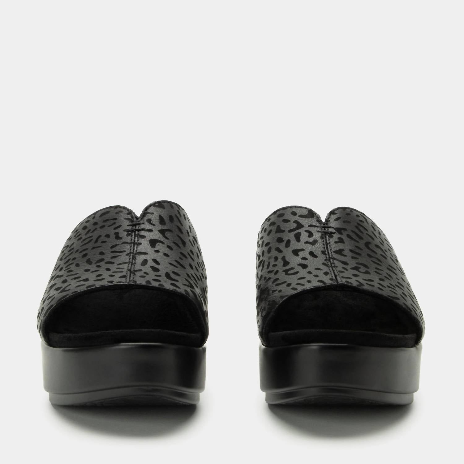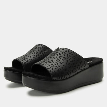 Classicly cute and all-day-wearable. We love this sandal.Revisit the '70s in this simple leather slide designed with hidden elastic goring and a subtle 'V' cutout at the top line. The contoured footbed and lightweight comfort flatform outsole raises the bar on support and style. The microsuede covered footbed, has a soft hand-feel for durable stylish coverage and comfortable feel. Featured in a Not A Cheetah colorway on a leather upper. Features: Leather upper. Durable microsuede footbed. Inside elastic gore. Lightweight polyurethane outsole. Heel height: 2.25" Care instructions: gently wipe clean with a damp cloth.