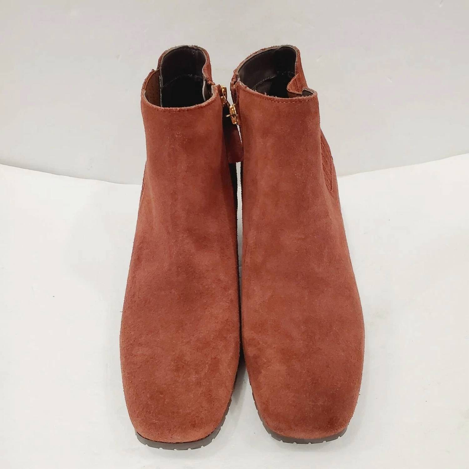 Step into the fall season with confidence wearing the Women's Charlotte Chelsea Suede Leather Waterproof Booties by AQUATALIA. Expertly crafted from premium leather, these rust-colored booties feature a squared toe and a stylish block heel. Designed with a vintage appeal, they're perfect for travel and various occasions. Embrace comfort and style with a medium width fit, ensuring a flawless look this season.