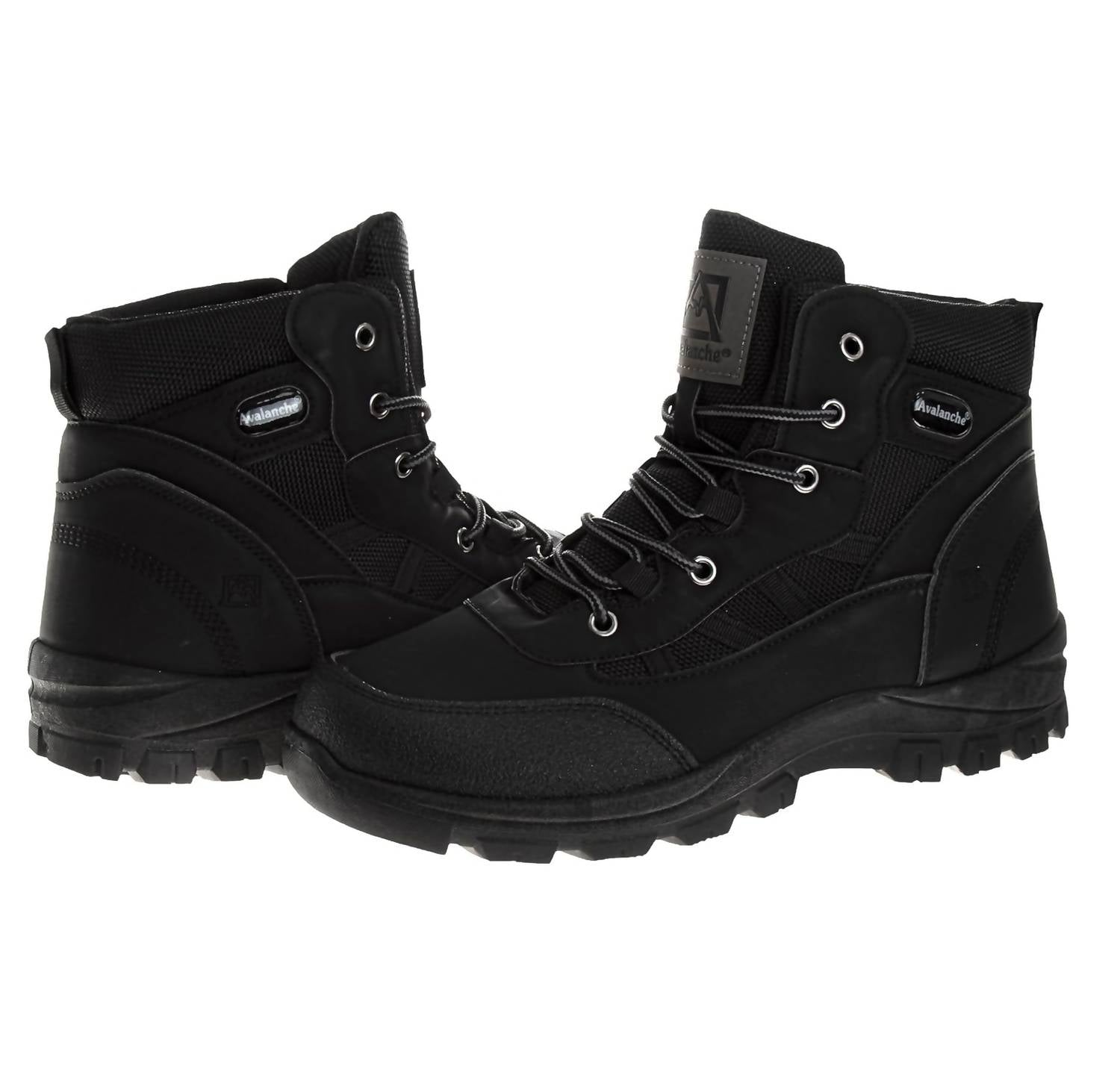 Keep your adventures going with the Men's Lightweight Hiking Trail Boots by Avalanche, designed for comfort and durability. These black boots feature a high-top design with a padded back for warmth, perfect for fall excursions. The lace-up closure ensures a secure fit, adapting to various foot types, while the high-quality materials provide non-slip traction and lightweight support. Ideal for hiking and outdoor activities, these boots promise all-day comfort and style in any terrain.