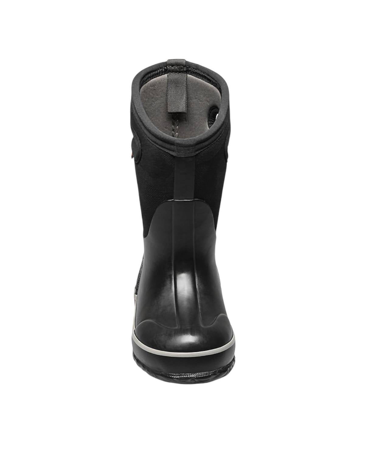 Step into adventure with the BOGS Classic Camo Rain Boots, perfect for keeping little boys' feet dry in style. Featuring a flat heel design and a medium shoe width, these boots are crafted from durable rubber with 7mm Neo-Tech waterproof insulation for warmth. Designed with a round toe, they ensure a comfortable fit for outdoor activities. To maintain quality, simply hose off with cold water and gently scrub clean.