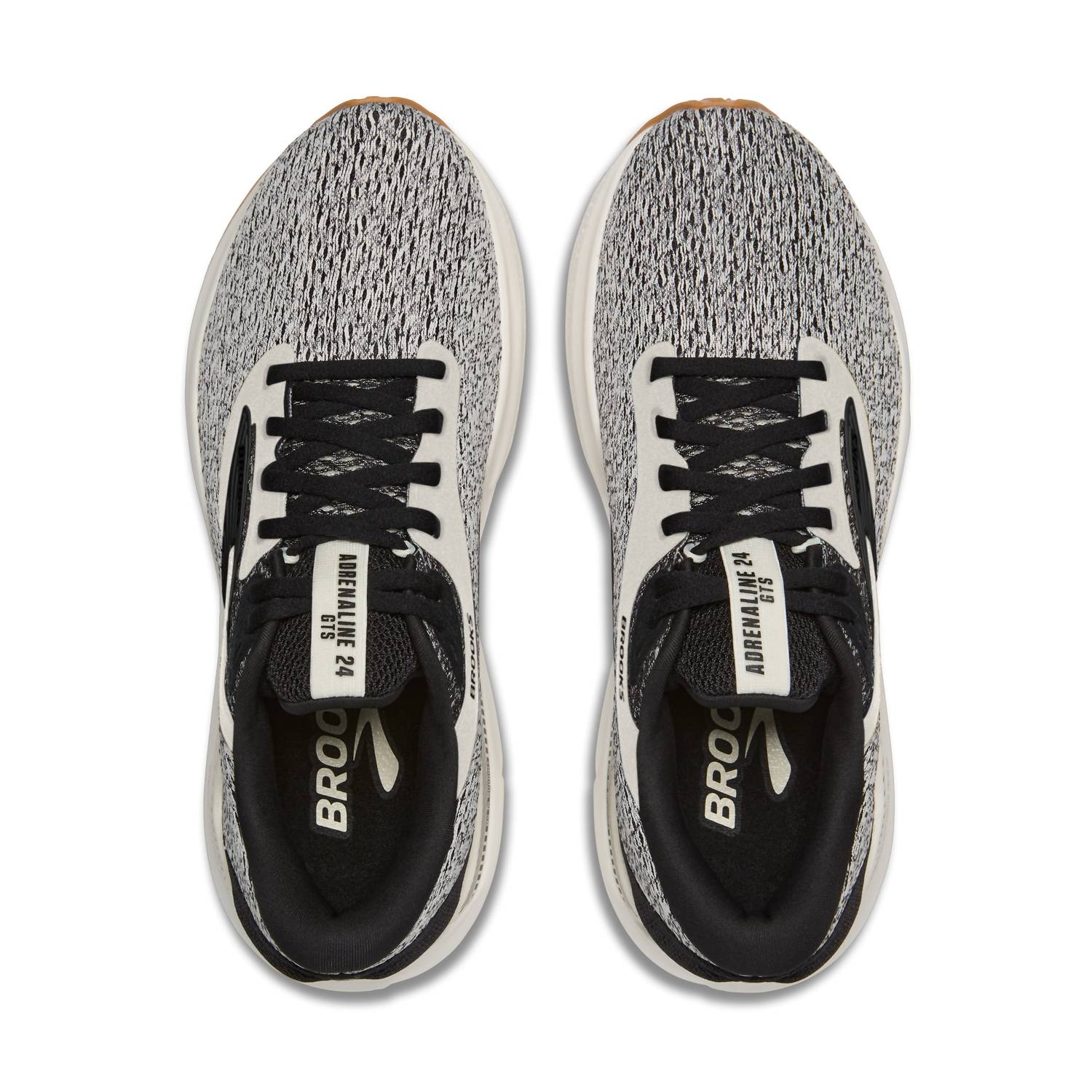 Workout in style with these adorable athletic sneakers. Introducing the Women's Adrenaline V24 Running Shoes by BROOKS, a beloved choice for over 20 years. Crafted with a breathable mesh upper, these shoes feature nitrogen-infused cushioning for unprecedented lightweight softness, complemented by a trusted GuideRails® support system that reduces excess motion. In a striking Coconut/Black color, they boast a medium width and a sleek round toe design, perfect for summer athletic pursuits. Ideal for women seeking comfort and performance, with a flat heel height to keep you grounded and stable.