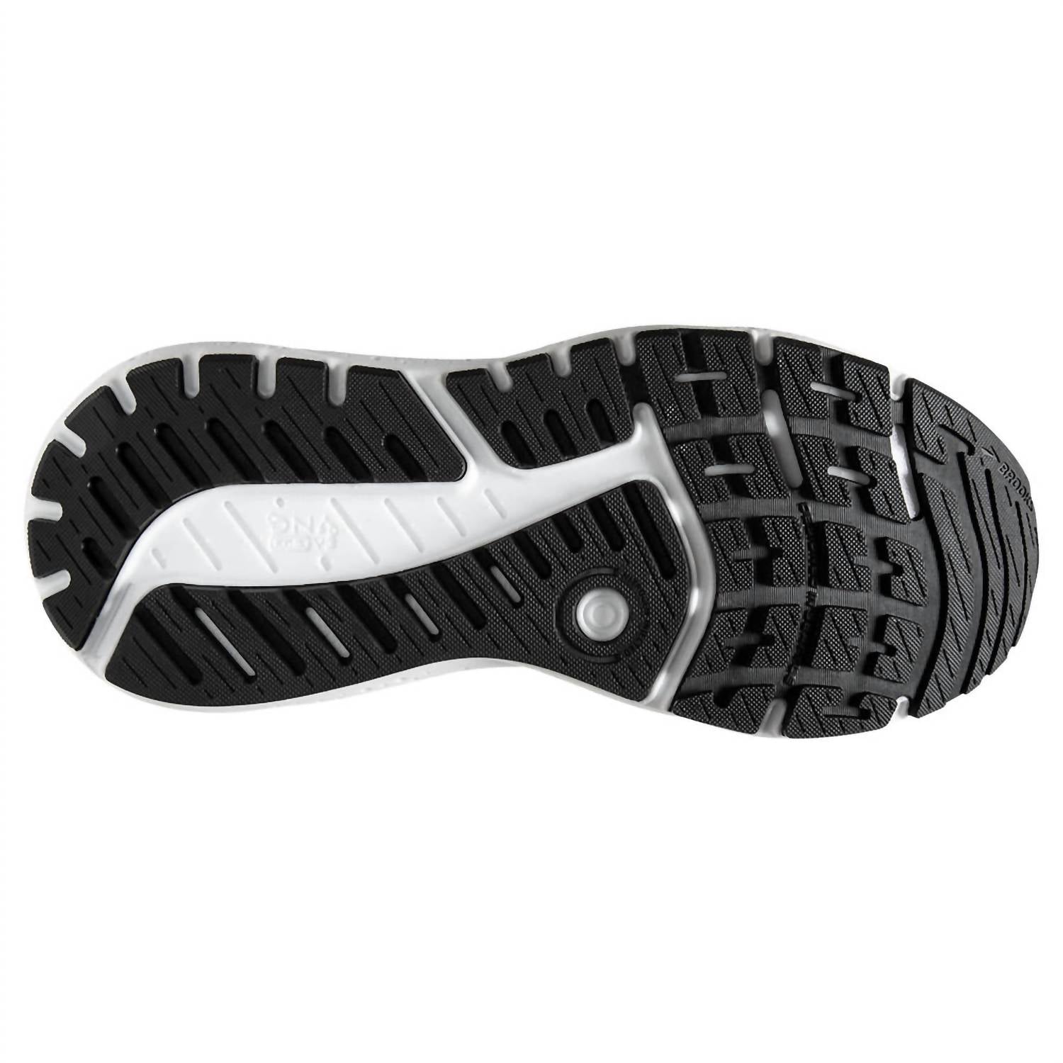 Experience unparalleled stability and comfort with the Women's Ariel GTS 23 Running Shoes by BROOKS. Crafted in a sleek black, grey, and white palette, these sneakers feature a round toe and flat heel for a secure yet comfortable fit, optimized with 58.3% recycled materials. Notably, the nitrogen-infused DNA LOFT v3 cushioning provides exceptional impact protection, while the 3D Print technology ensures a snug, supportive fit. Made for fitness and workout sessions, these shoes are perfect for those seeking reliable footwear with a touch of elegance.