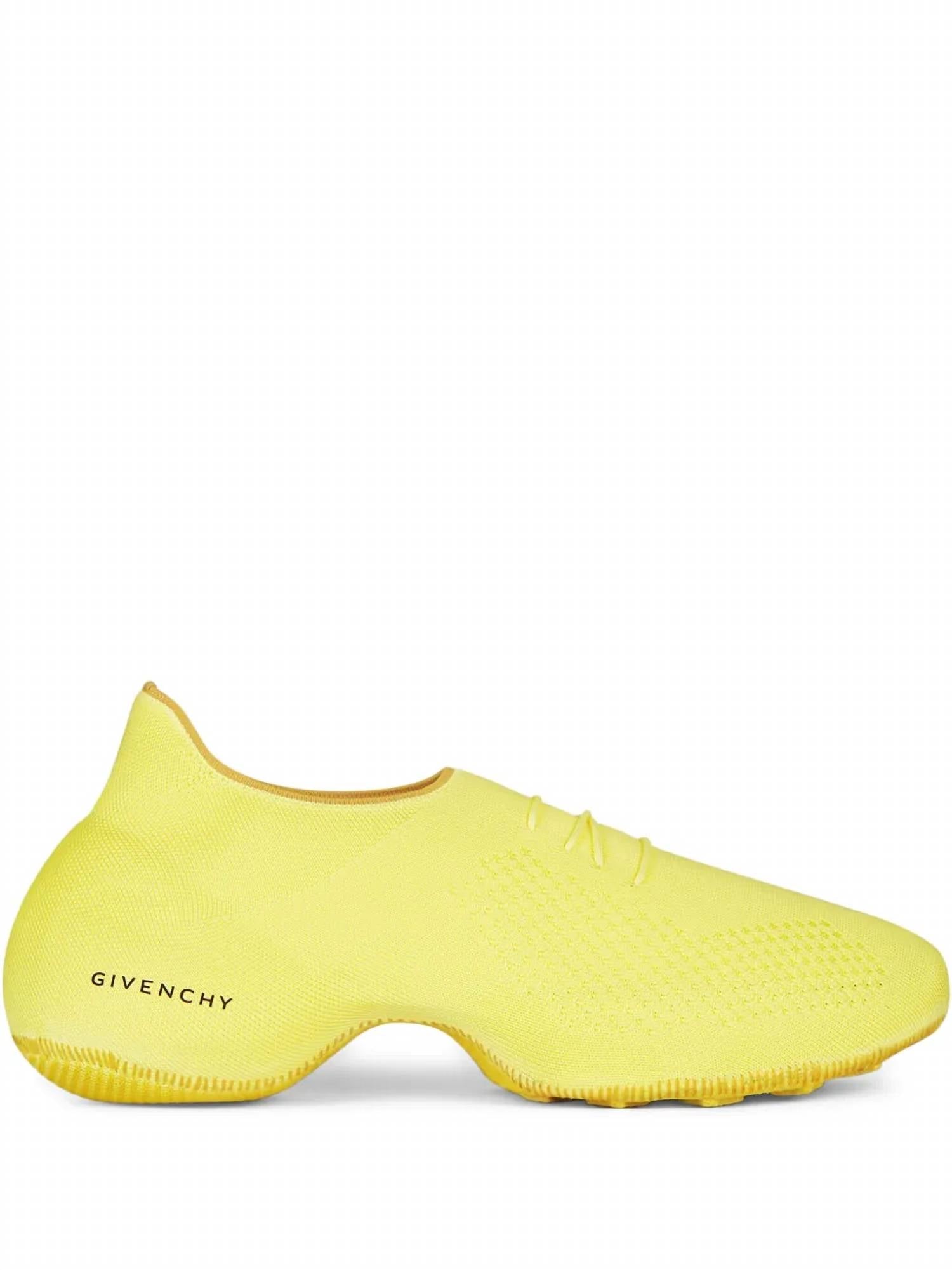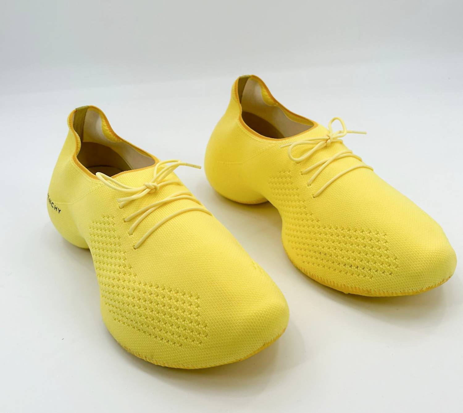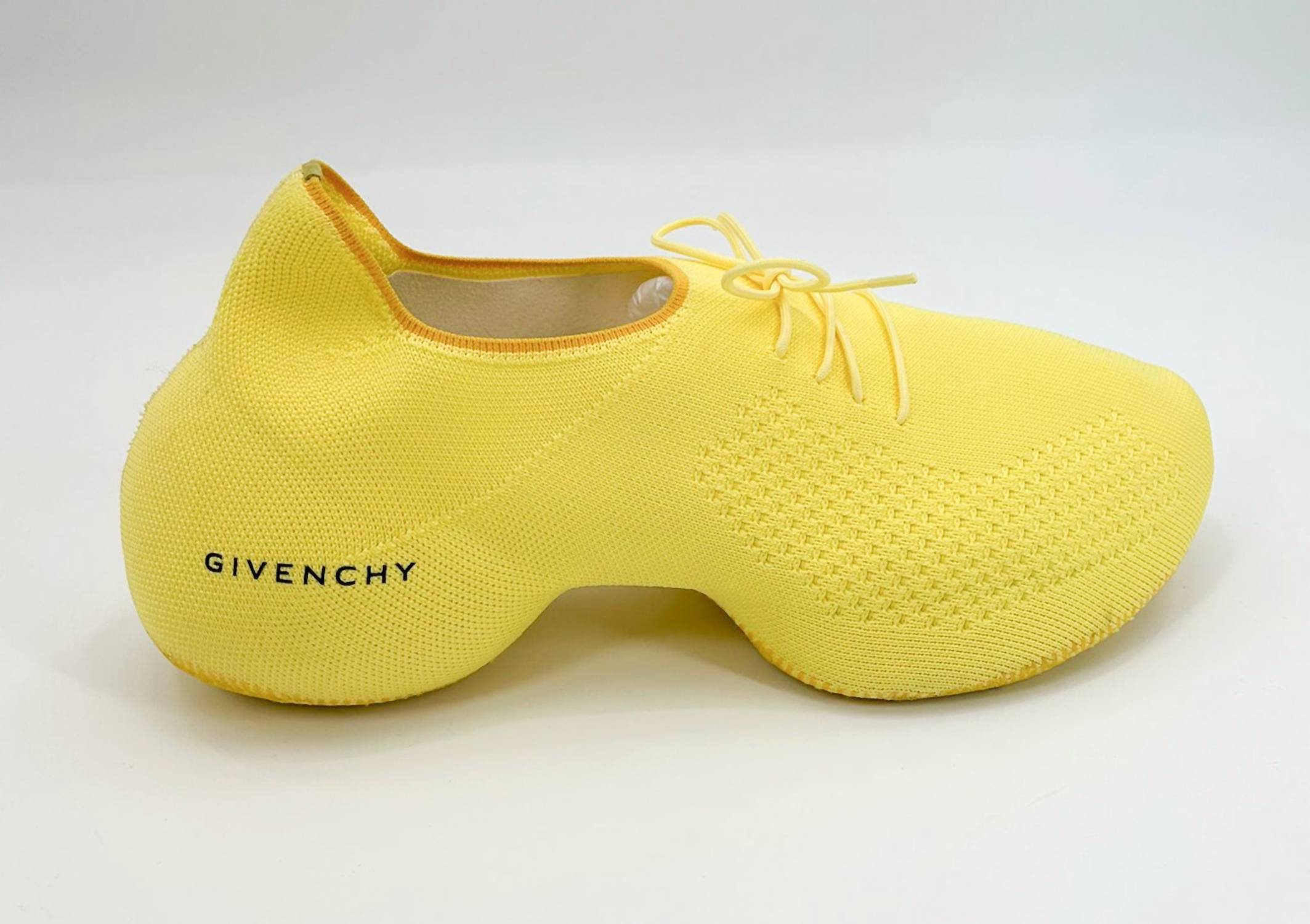 Unveiling the Men's TK-360 Sneakers by Givenchy, a perfect fusion of style and comfort for the modern man. Crafted in an eye-catching acid yellow hue, these sneakers feature a knitted construction that promises breathability and a front lace-up fastening for a secure fit. The round toe design is complemented by a durable rubber sole, making them ideal for summer athleisure and fitness occasions. Composition: 100% Fabric outer and lining, 100% Rubber sole.