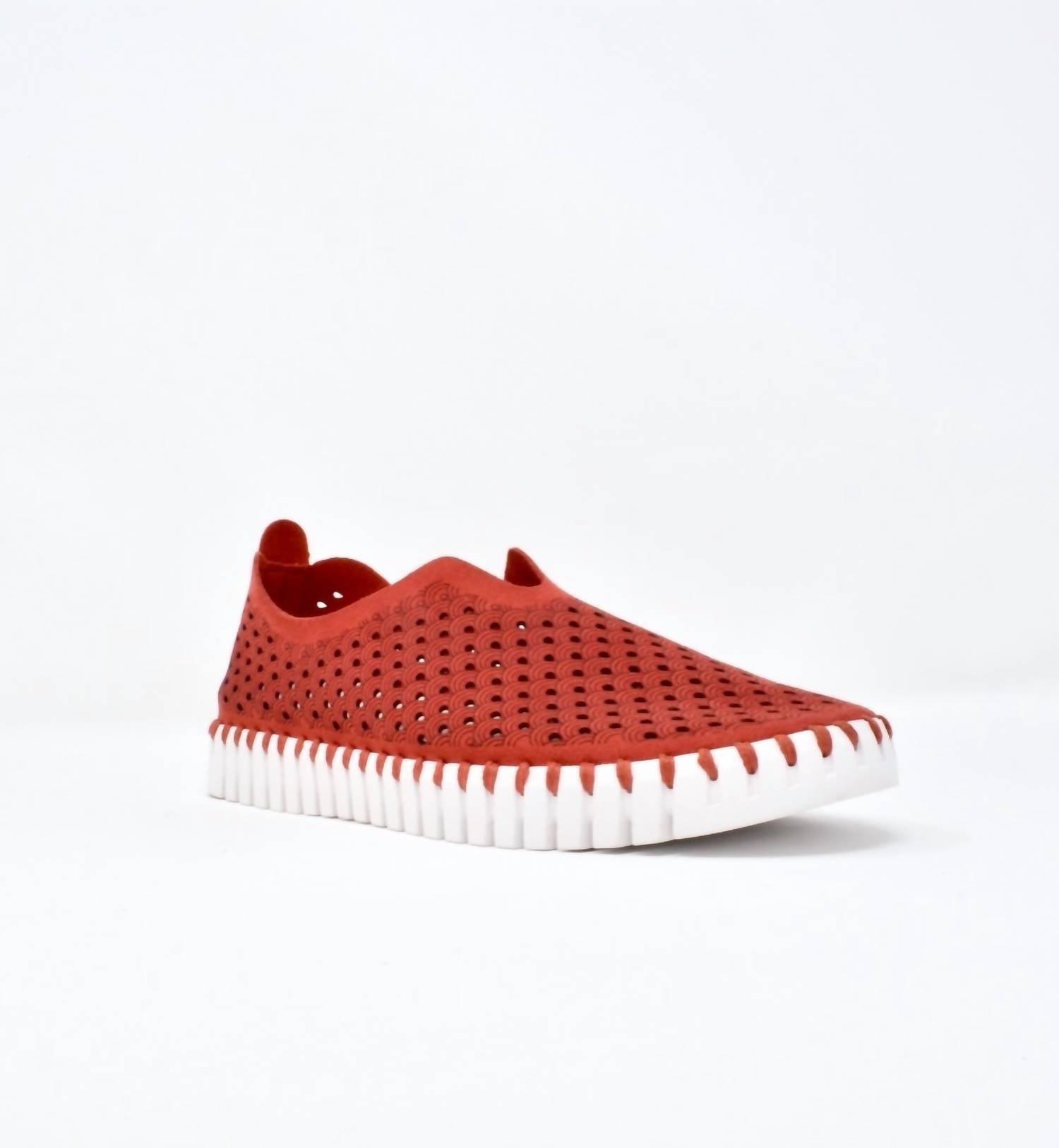 Experience the perfect blend of comfort and style with the Women's Tulip 139 Sneakers by Ilse Jacobsen. These sneakers boast a soft, recycled microfiber upper with a unique laser cut pattern and recycled stitching, eliminating the need for glue. Enjoy the removable leather footbed and flexible natural rubber sole, offering unparalleled comfort and support for every journey. Designed with a flat heel under 1 inch and a round toe shape, these sneakers are ideal for the eco-conscious traveler.