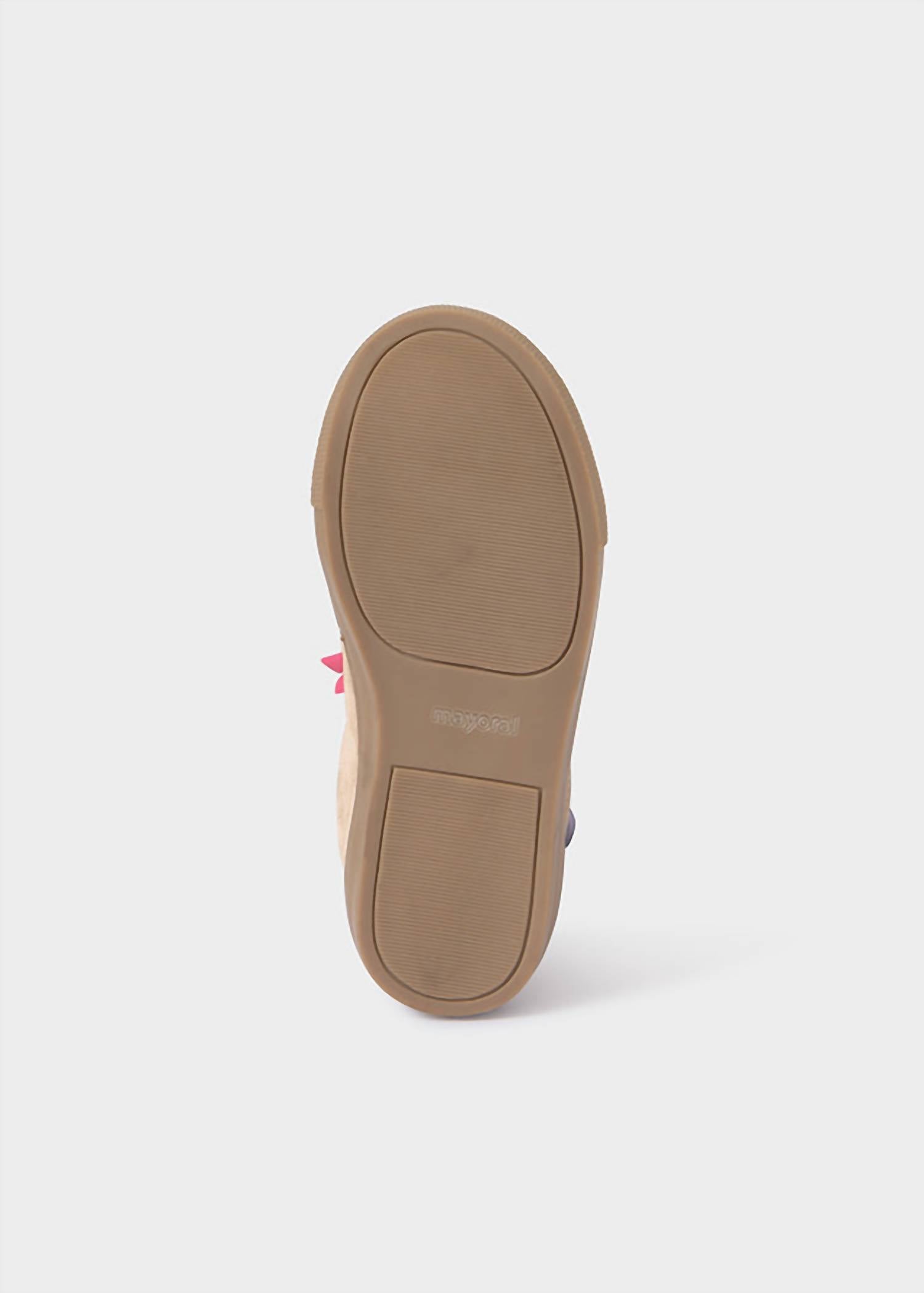 Step into style with the Kid's Suede Sneakers by Mayoral, a perfect combination of casual comfort and sustainable design. Made with 100% bovineskin leather for the court and instep, these sneakers ensure durability and fashion. Lined with a blend of 70% cotton and 30% sheepskin, they promise a comfortable fit, featuring a 100% thermoplastic rubber sole for excellent traction. With their medium width and flat heel, these sand-colored sneakers are ideal for boys during the summer season, making them a streetwear staple for any holiday party or outing.